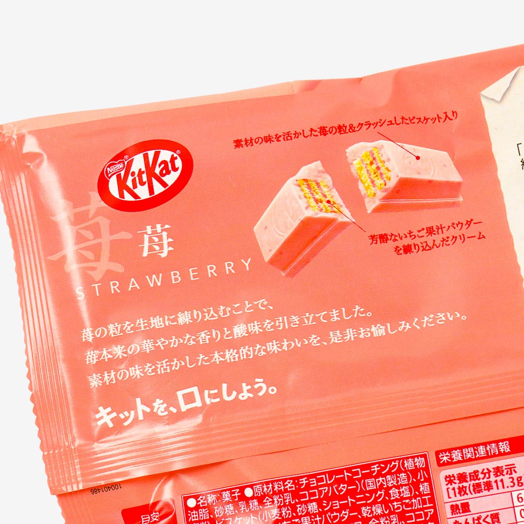 Japanese Kit Kat is famous for having new and exciting flavors for their traditional chocolate bars. With these mini Kit Kat bars you can enjoy strawberry chocolate & crunchy wafer flavours together! Strawberry Chocolate mini bars have a full, sweet strawberry flavoured chocolate taste. The crunchy wafer biscuit is covered with strawberry dyed white chocolate. and between the wafer layers there are thin strawberry chocolate layers as well! Sweet and classic Kit Kat pack for Kit Kat fans!