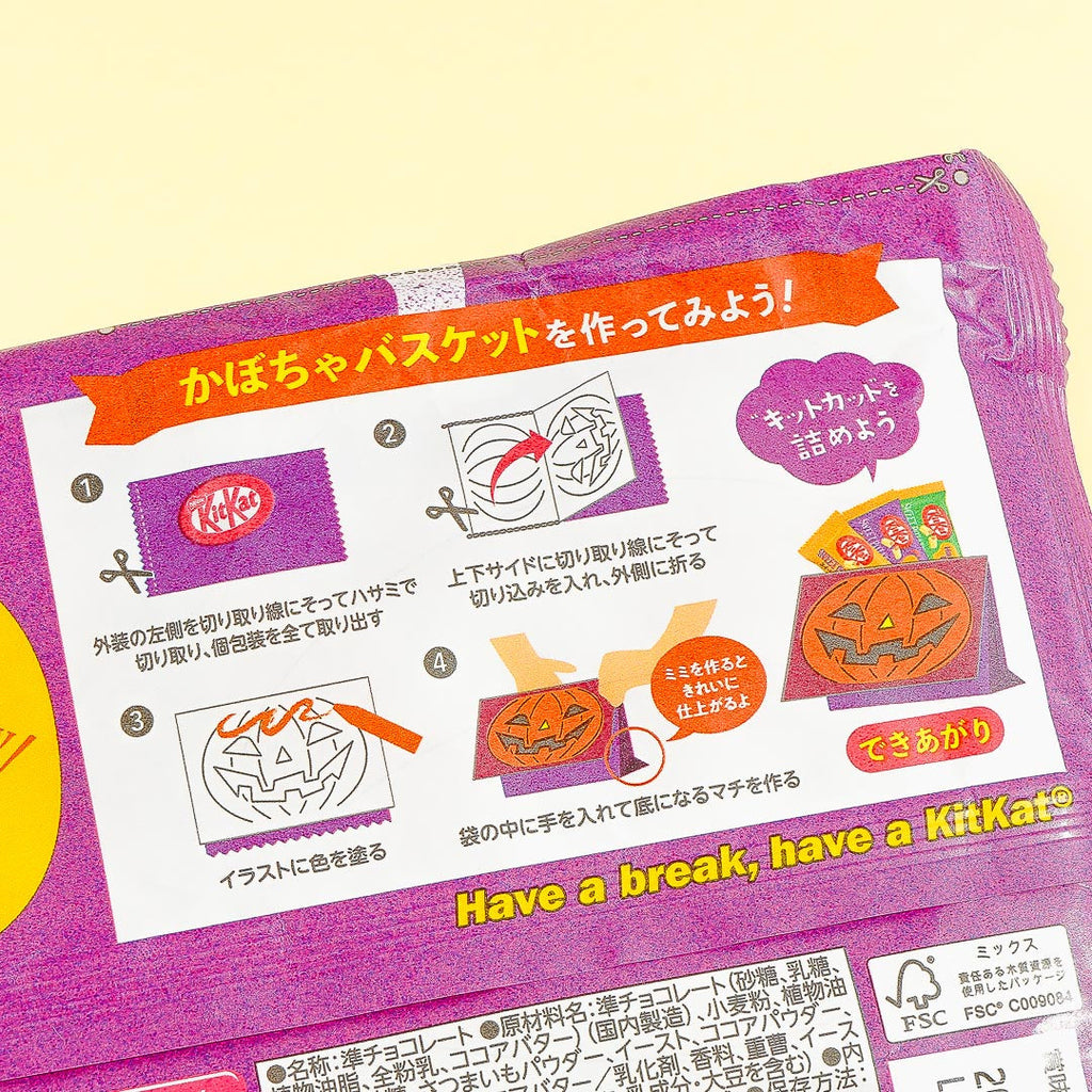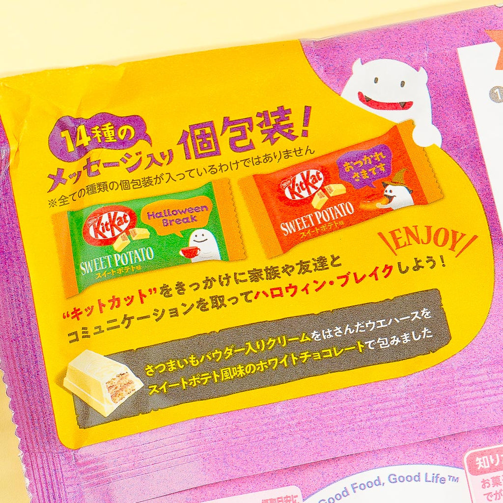 Sweet potato is a popular snack in Japan during the autumn season. This white chocolate-coated wafer features a unique sweet potato flavor! It comes in a limited-edition Halloween packaging. Finish a pack on your own or share it with friends!