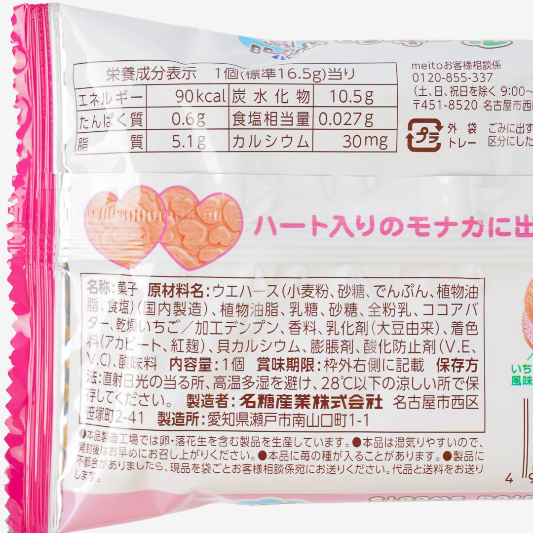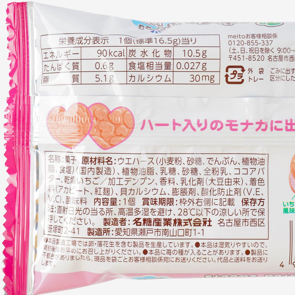 Taiyaki, a fish shaped wafer that usually has a cream and red bean filling in it, is popular street food in Japan and Korea! This Puku Puku Tai Fish Shaped Wafer is an unusual snack made by Meito which consists of a monaka wafer on the outside and air-bubble strawberry chocolate on the inside. The chocolate inside is like a fluffy mousse and has a delicious strawberry chocolate flavour. Take a trip to Japan by eating this famous snack!