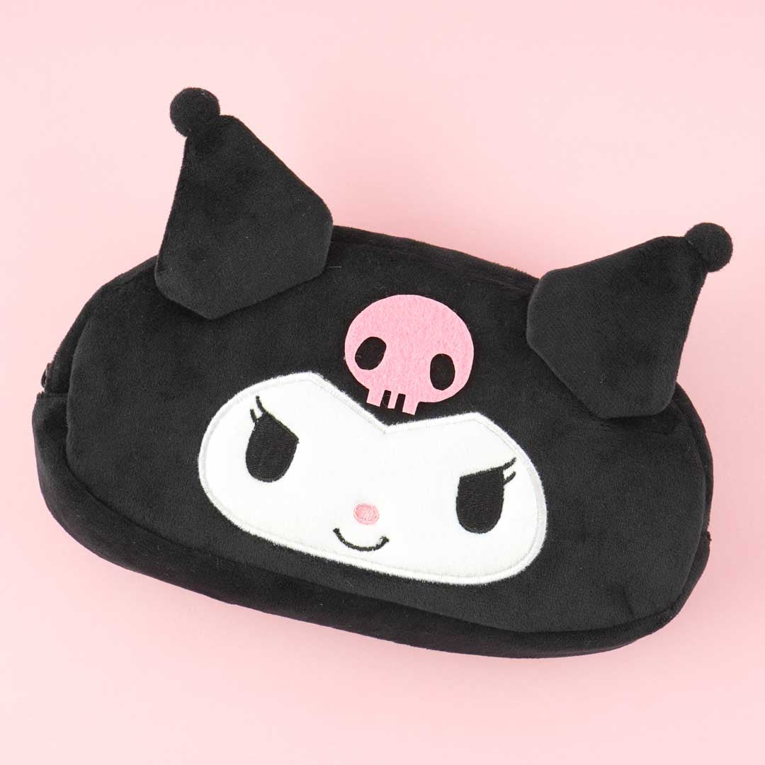This roomy Kuromi face pouch is made from soft material and has pop-out pointy ears! Place your favorite lipsticks, blushes, and other makeup inside.