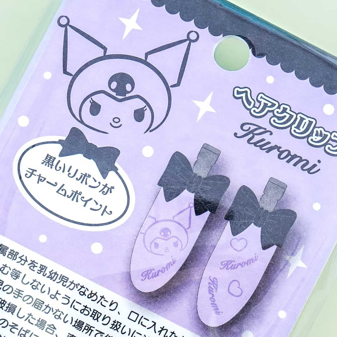 This kawaii clip set features prints of Kuromi and sparkles all over! Each barrette has a black ribbon charm attached to it as well. Use these super cute clips to keep stray hair away from your face!