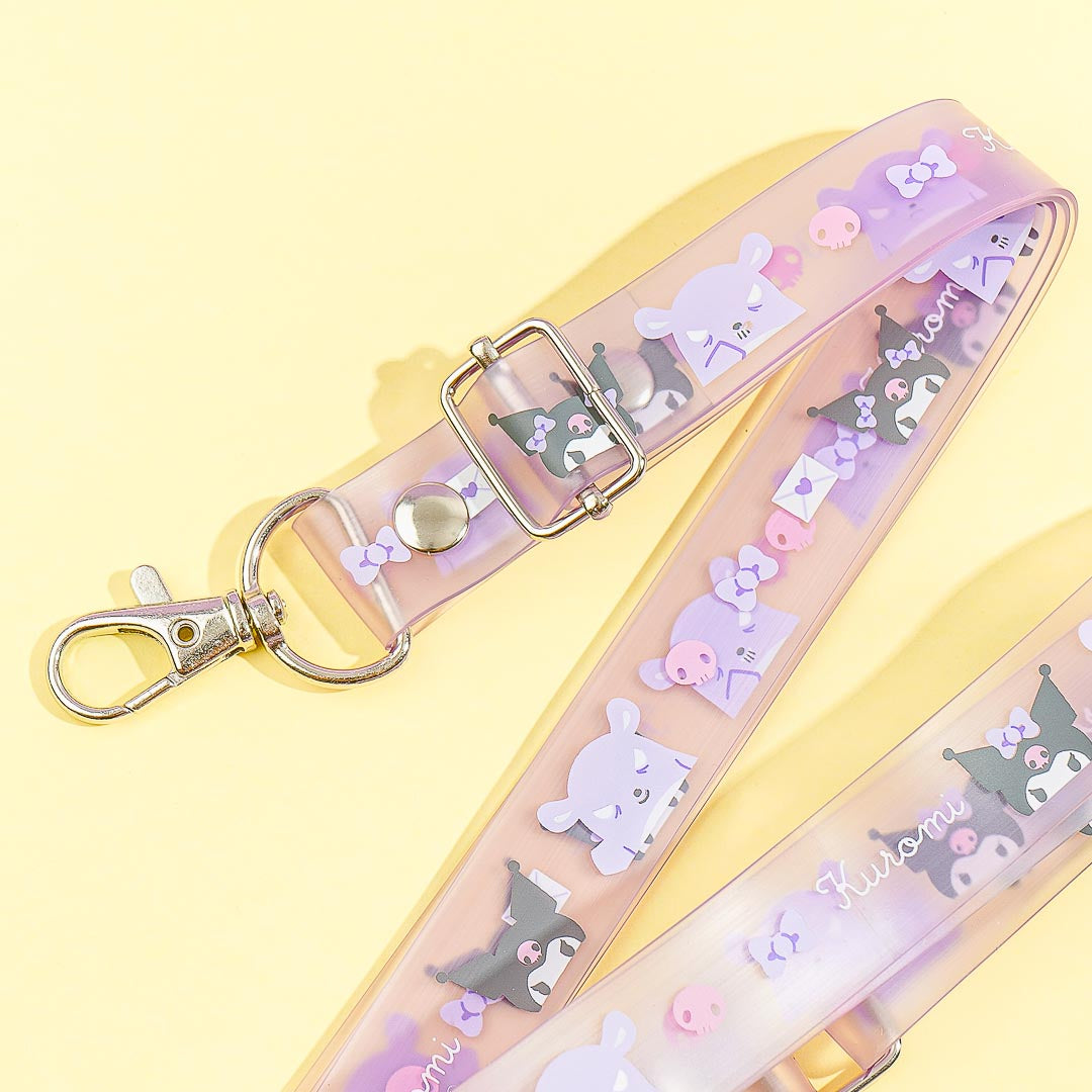 This super cute purple lanyard has kawaii illustrations of Kuromi and Baku! Attach this to your school or work ID! You can also adjust its length and use it as a bag strap.