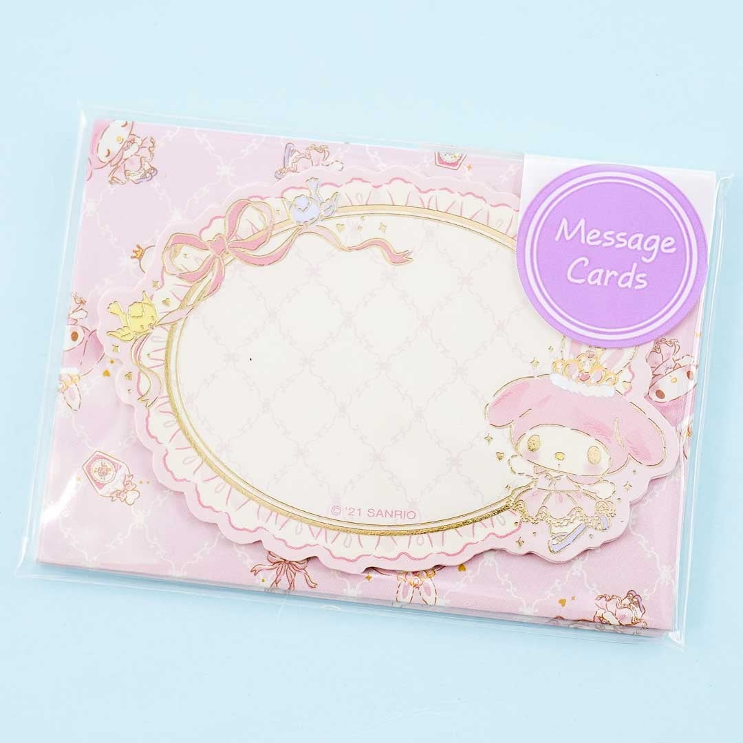 Create lovely handwritten messages to your loved ones using these die-cut message cards with prints of My Melody dressed up as a ballerina! The set comes with five cards and corresponding envelopes. You can seal your messages using the included sticker seals.