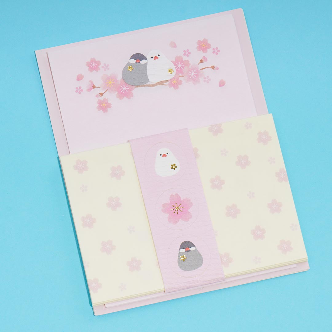 This kawaii letter set is great for writing sweet letters to your crush! It features cute illustrations of a pair of birds on a sakura branch with lots of cherry blossoms. Use these mini sheets and envelopes for personal letters.
