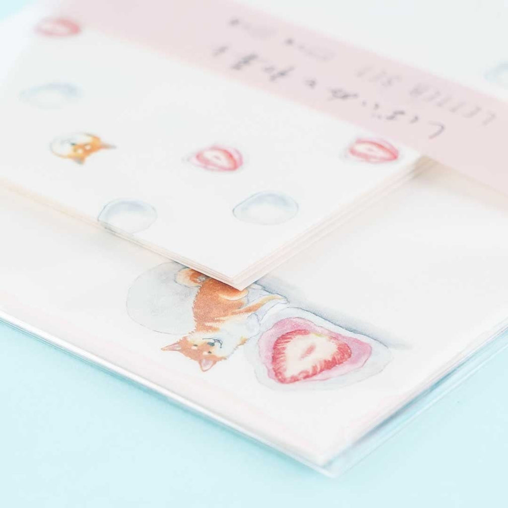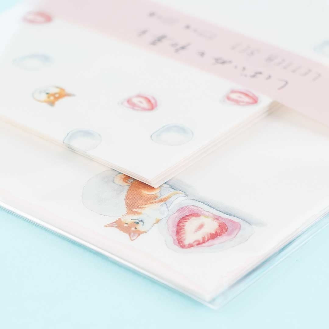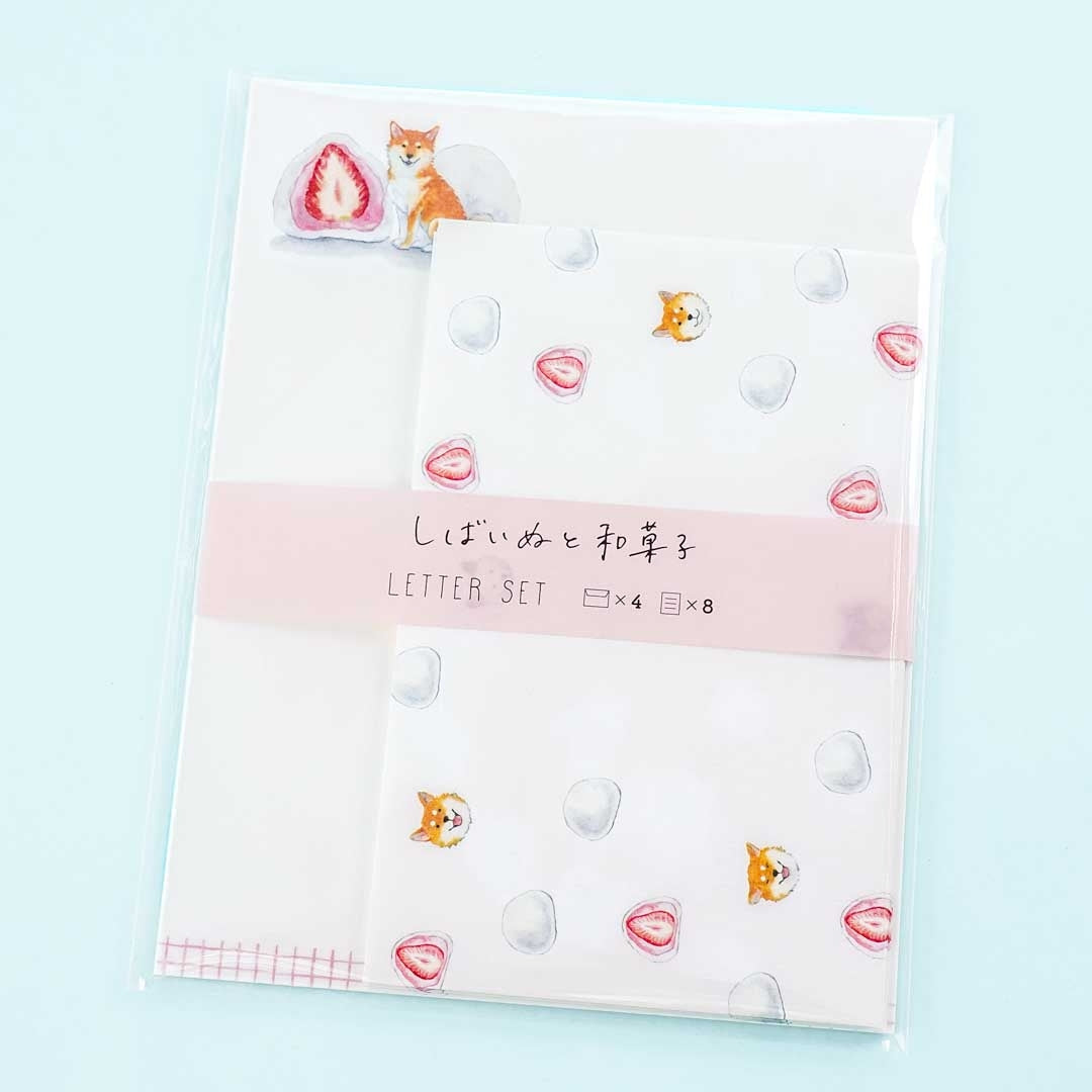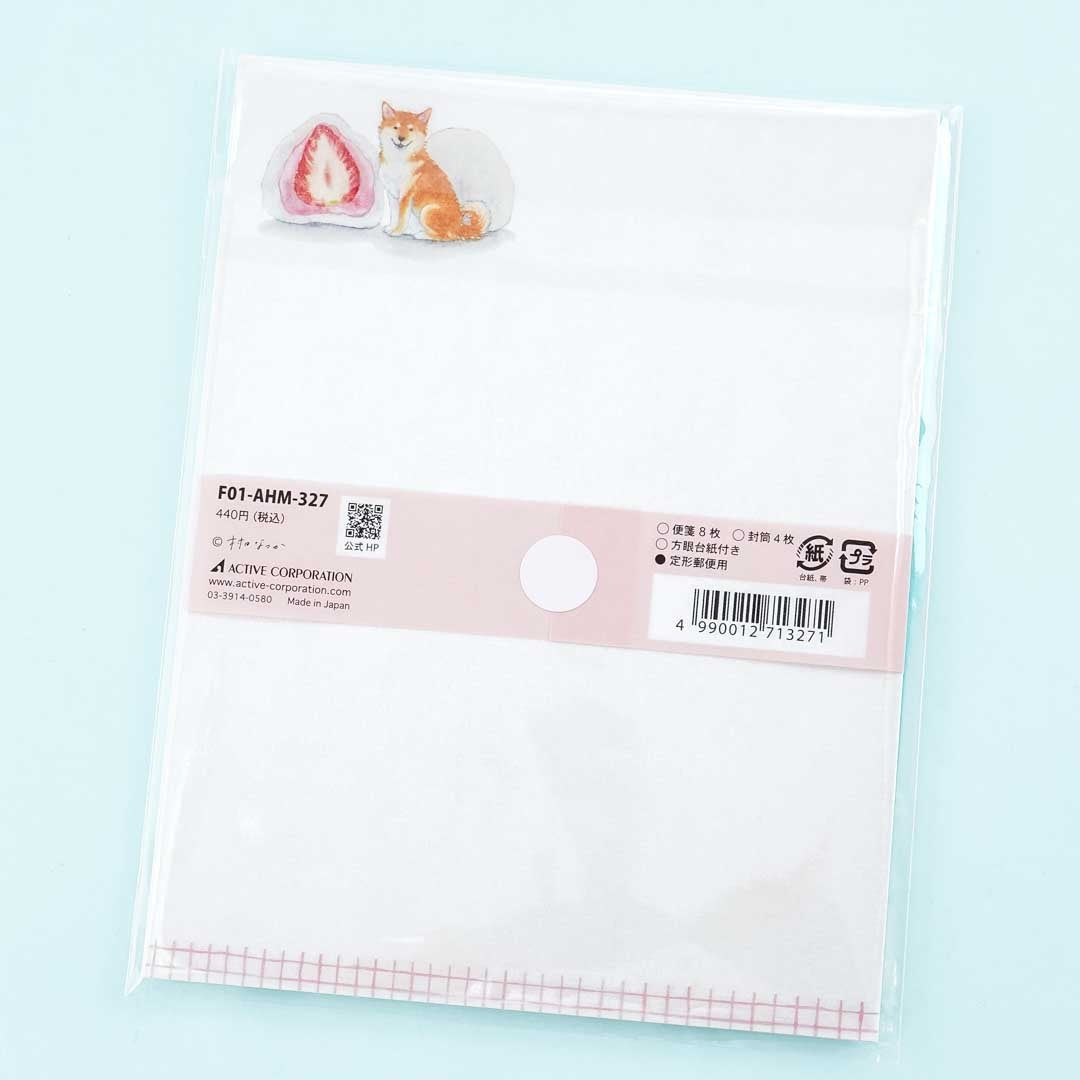A pack of letter set printed with illustration of Shiba Inu and daifuku mochi