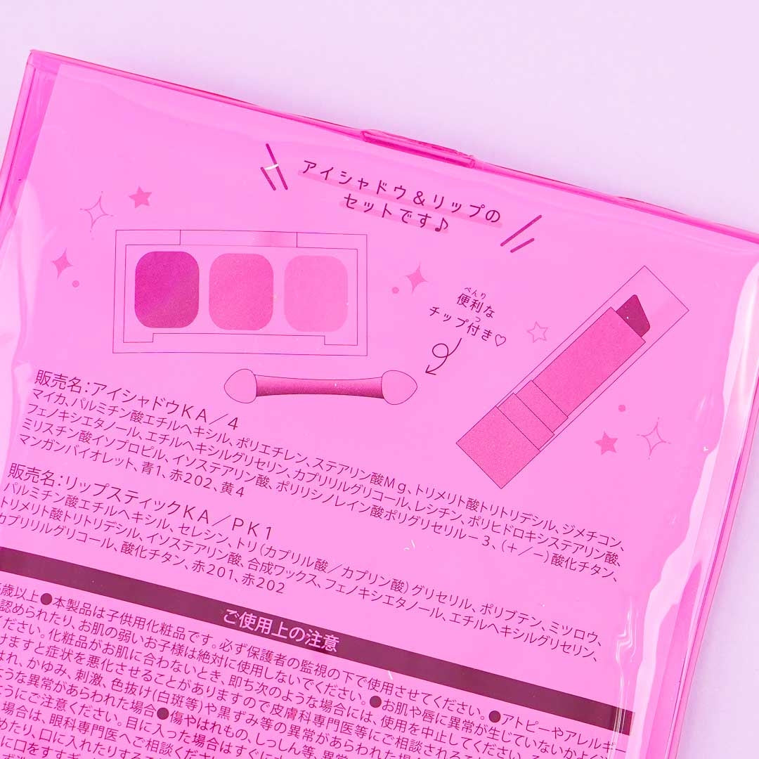 Use this Little Twin Stars-themed makeup set to kawaii-fy your look! It includes an eye palette that has three pans with purple, pink, and mint-colored shadows — as well as a mini applicator. A tube of coral pink lipstick and a matching clear carrying pouch complete this beauty kit! This entire set is safe to use for almost all skin types and even for children!