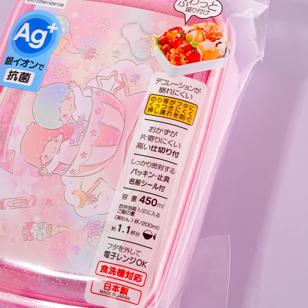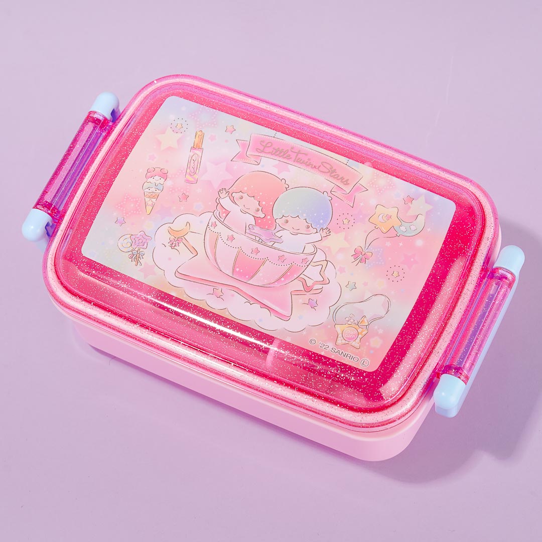 Use this super kawaii bento box to bring along your favorite dishes for lunch. It features prints of the Little Twin Stars on a fun teacup ride! This bento box has a raised lid with clasp closures to keep your meals safe and secure. You can properly apportion your food thanks to its high partition! Remember to remove the lid before using it in the microwave.
