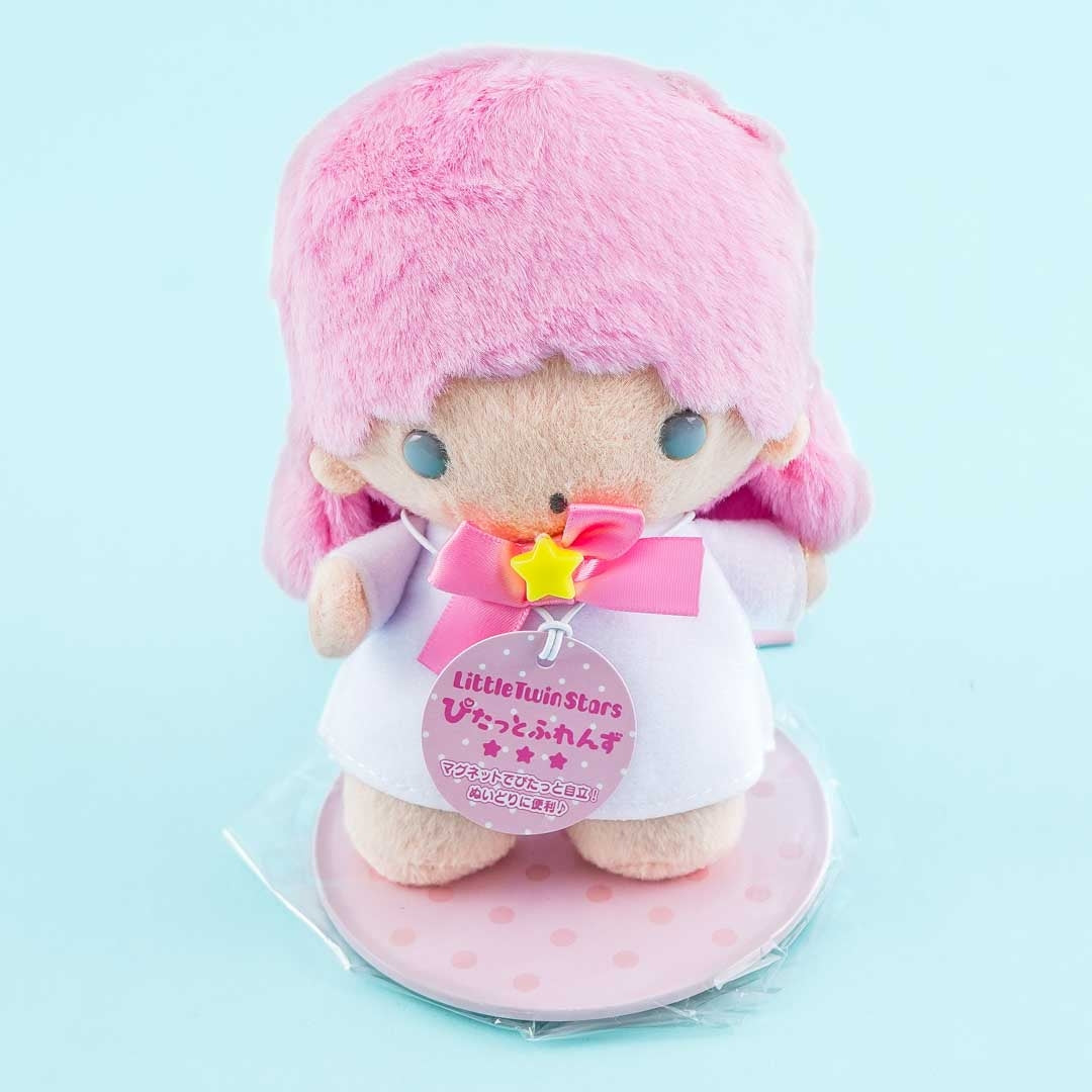Make space in your display case for this cute Lala plushie from the Little Twin Stars. This medium-sized stuffed toy can stand on the base thanks to the magnets in its feet!
