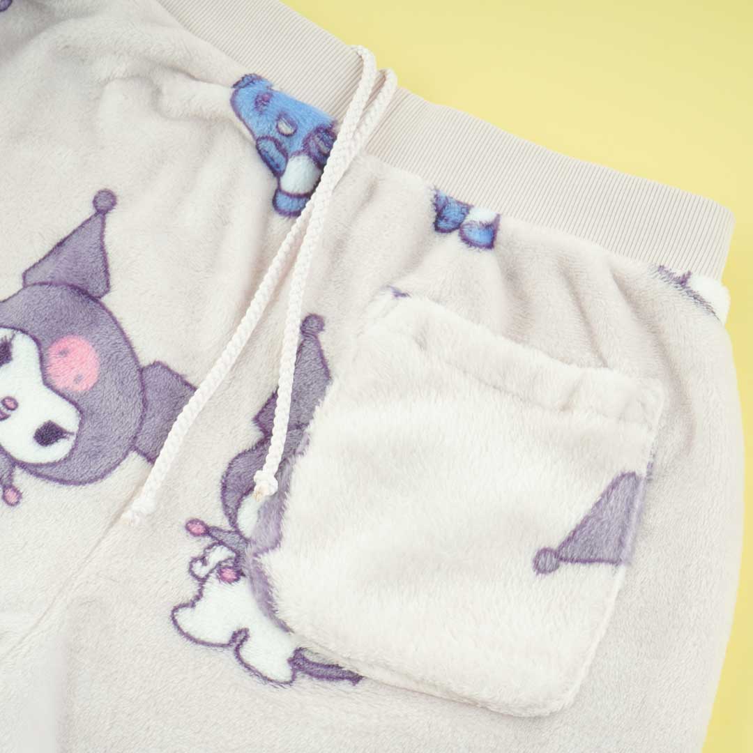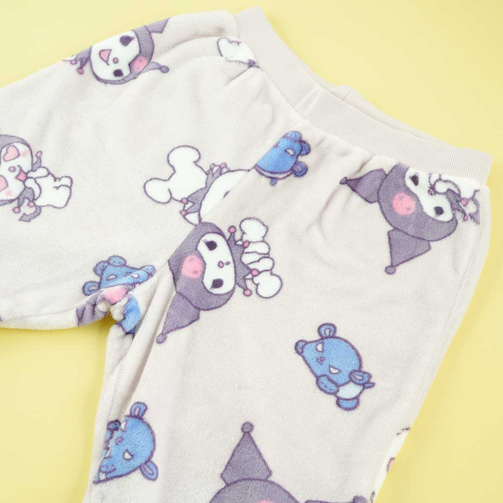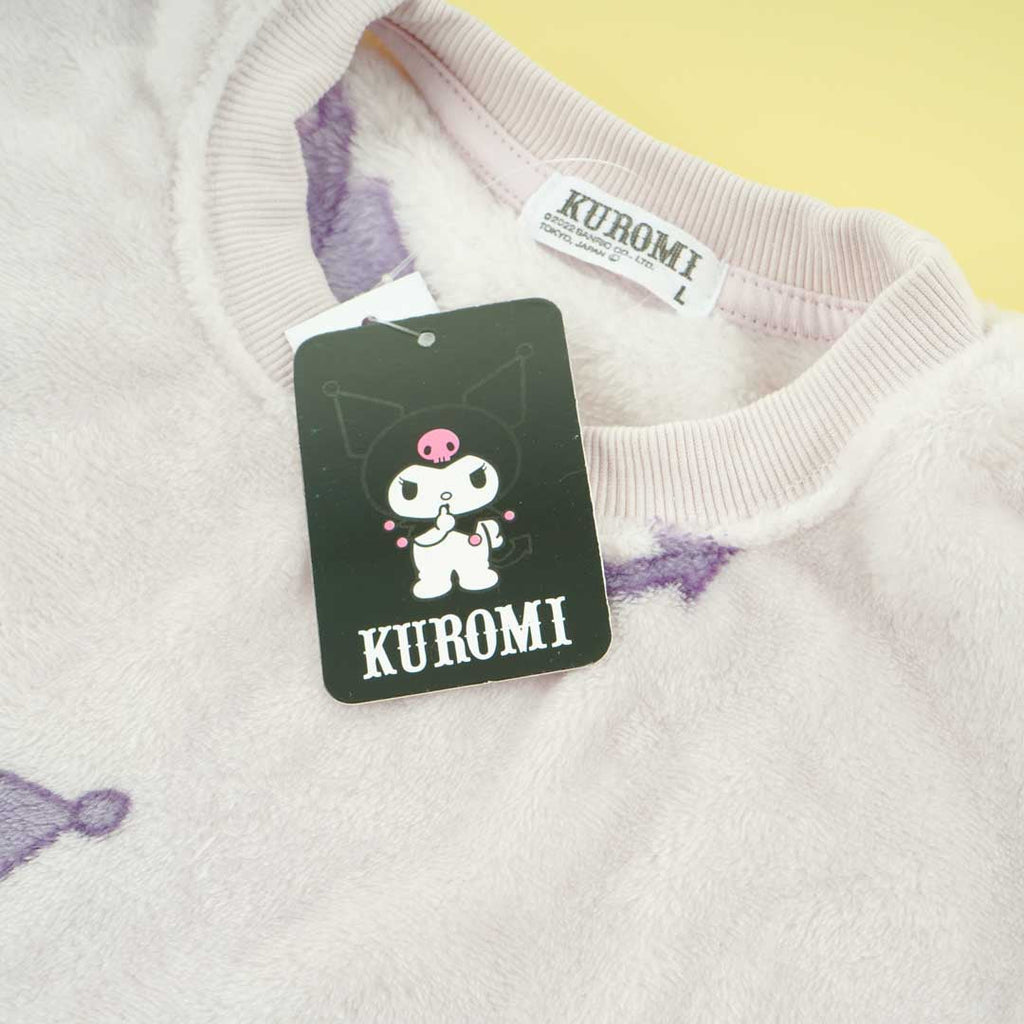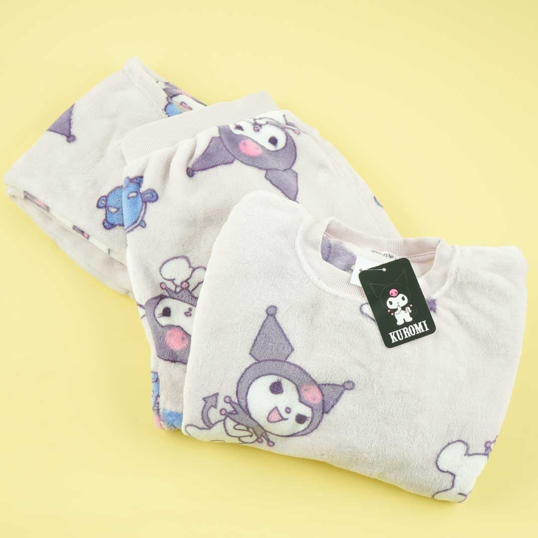 This super cute purple pajama set includes a long-sleeved shirt and a pair of pants. Both have matching prints of Kuromi with her sidekick, Baku! Stay comfy and cute indoors by wearing this kawaii set.