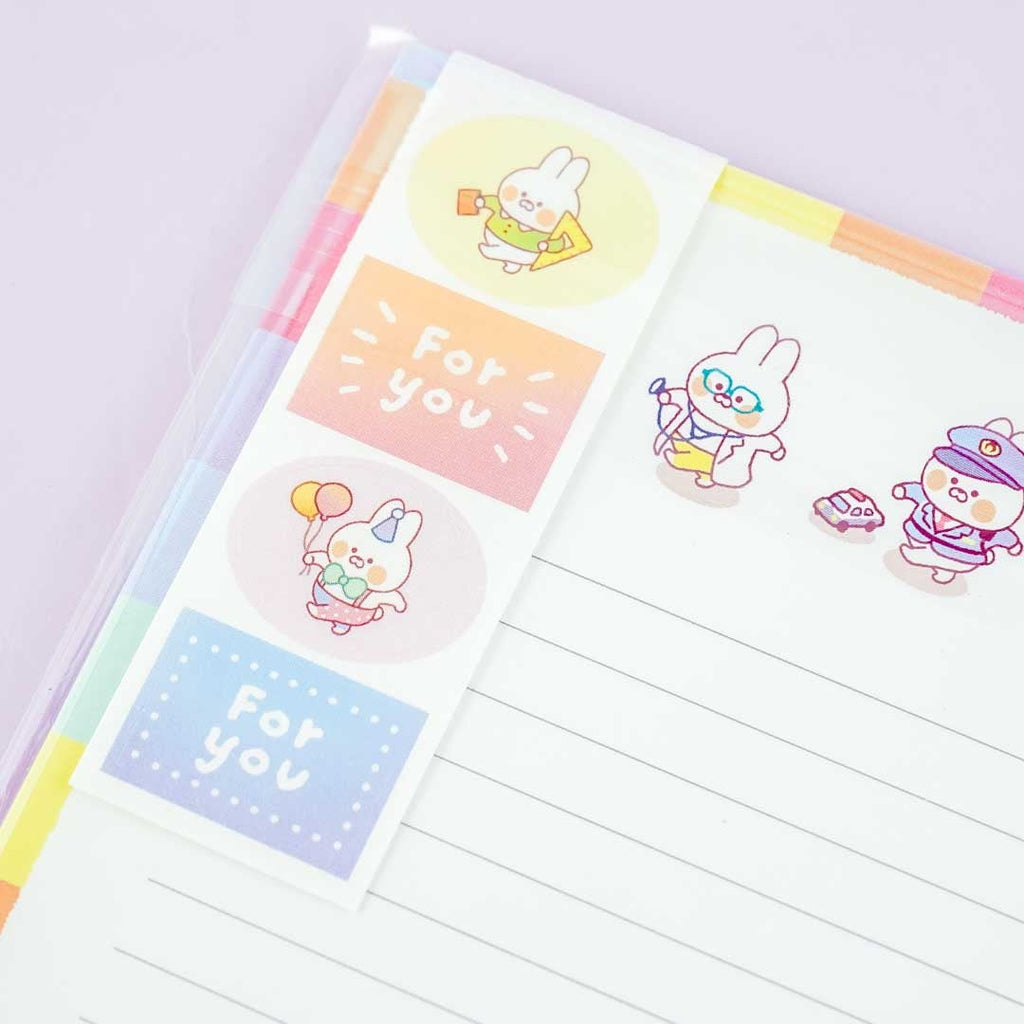 Create letters for your loved ones using this super cute stationery set! The lined sheets and envelopes have two designs featuring Muu-chan the rabbit wearing different work uniforms like that of a fireman, farmer, pizza delivery man, and more! You can seal your letters using the included stickers.