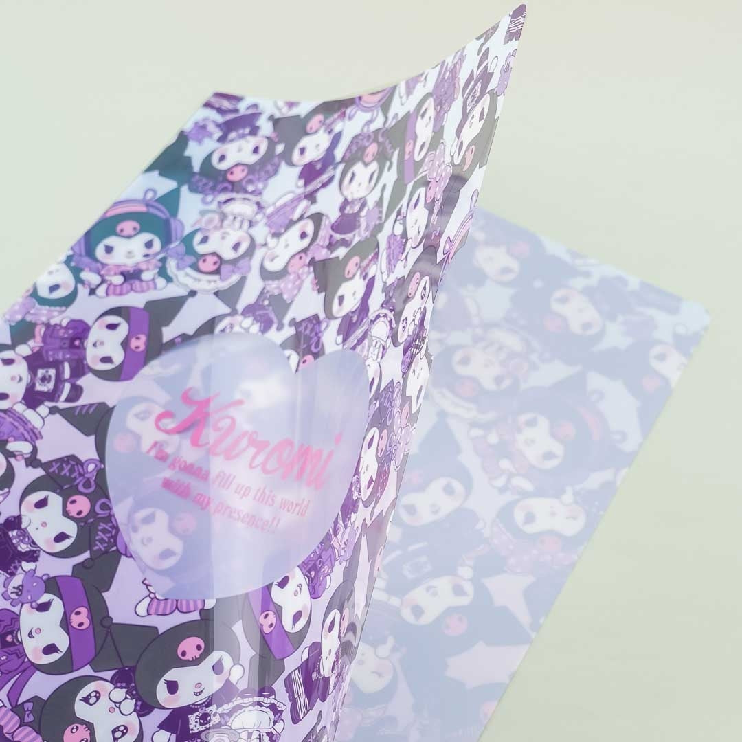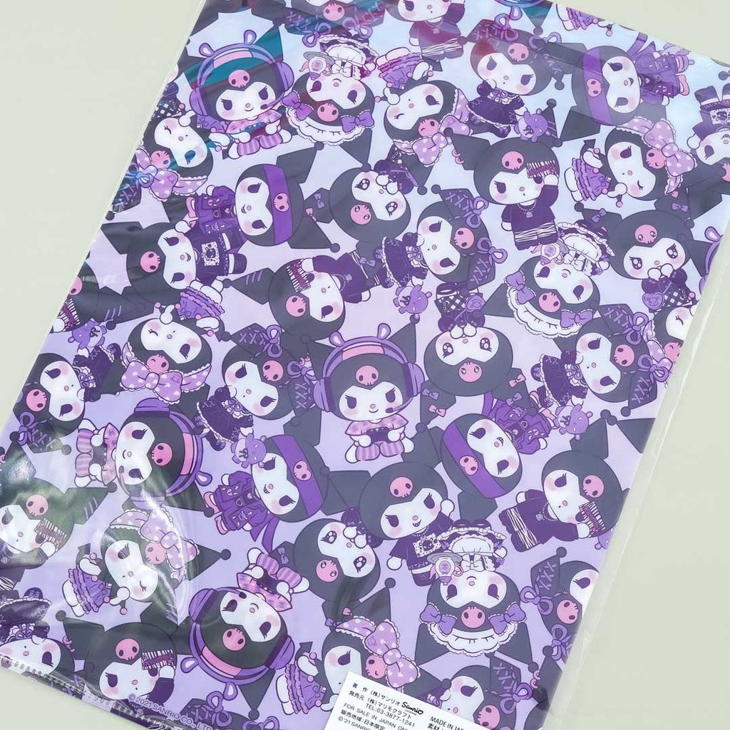 Keep your precious documents safe and dry inside this cute file A4-size folder! This semi-transparent plastic folder is filled with illustrations of Kuromi in her favorite outfits!