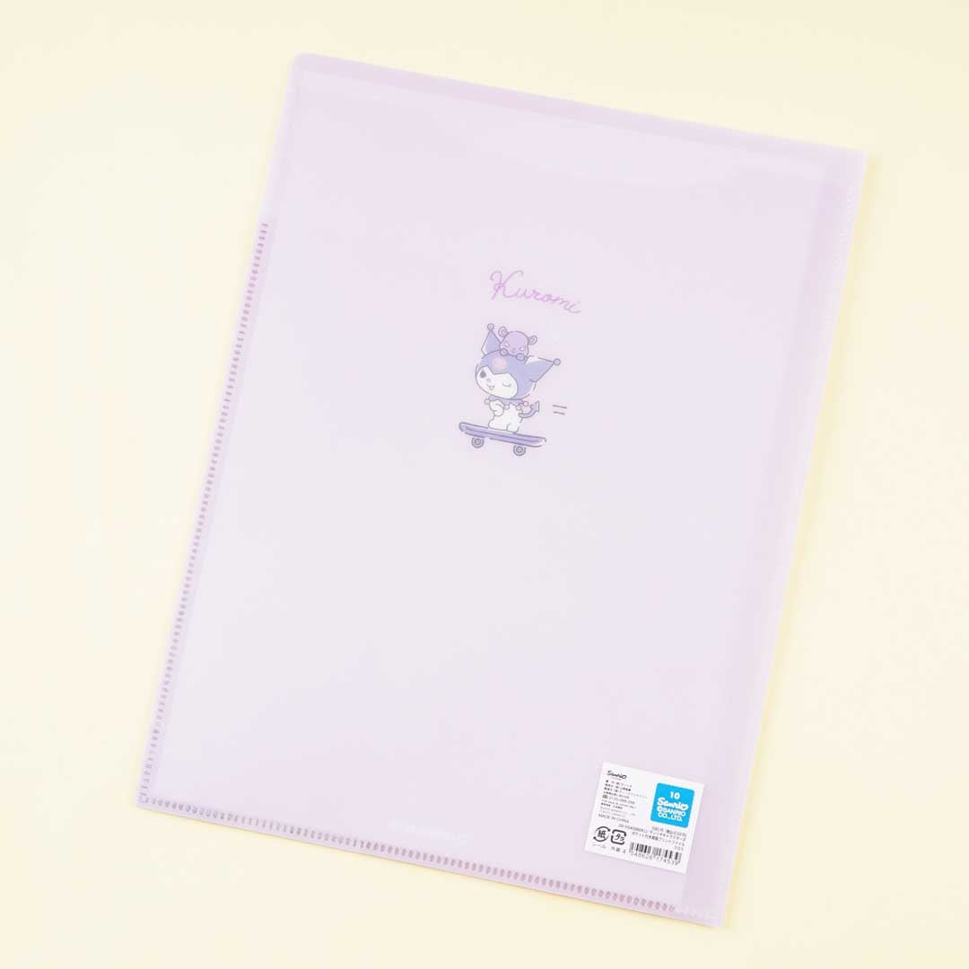 Keep valuable contracts safe and dry inside this kawaii index folder with slot pockets on both sides! It’s decorated with illustrations of Kuromi having fun breezing through her skateboard with Baku! This cute file folder is made of semi-transparent plastic.