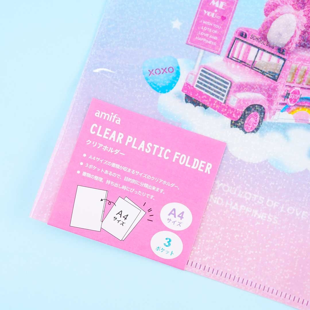 Stay organized by using this super kawaii A4 plastic folder to keep all of your documents. This colorful folder features prints of candy, a bear, clouds, and other cute things. It has 3 storage layers that you can use.