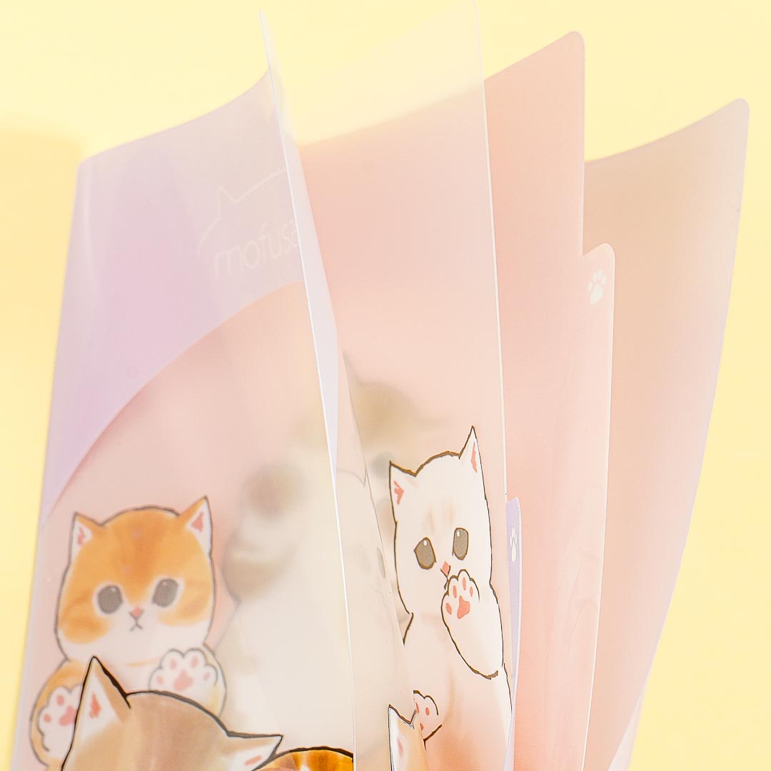 Organize your receipts, photos, letters, and other important documents inside this kawaii index folder! It has super cute illustrations of the Mofusand characters all showing their paws up! The handy clear file has three separate pockets for easier sorting.