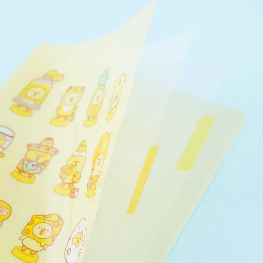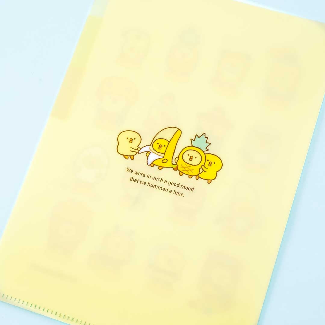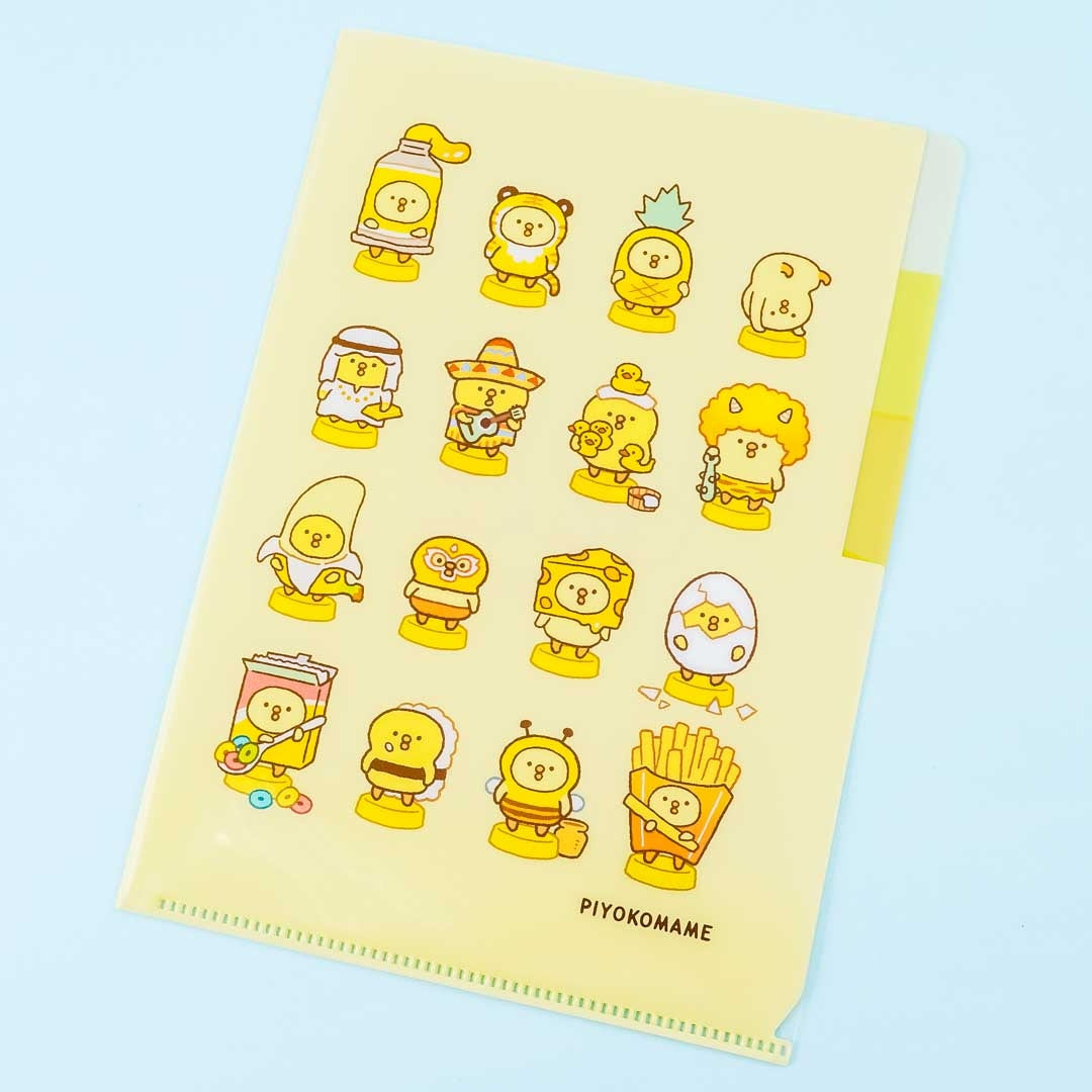 Organize your important documents in this kawaii index folder with illustrations of Piyokomame characters dressed as a caveman, a pineapple, a cereal box, and other random funny costumes! It comes in A5 size, has right side tabs, and has three inner pockets.