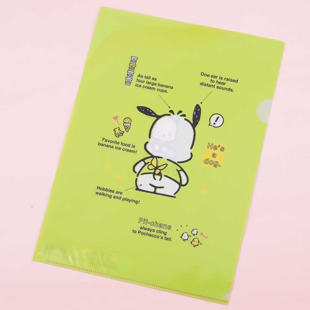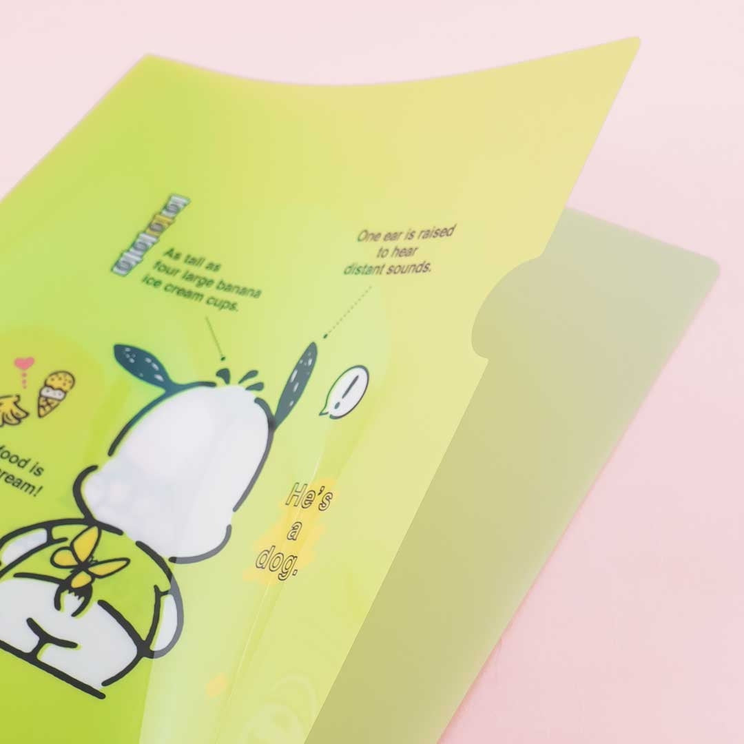 Organize your important files using this super kawaii semi-transparent folder. It comes in A4 size with illustrations of Pochacco's back and fun details about him on the cover.