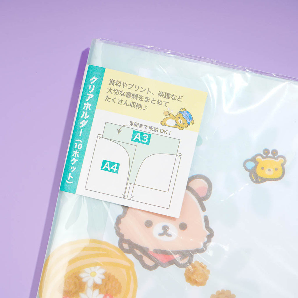 Organizing your files is easier with this super cute semi-transparent folder! It features kawaii illustrations of Rilakkuma on a camping day with friends. This has 10 spread-type pockets so you can sort your A3 and A4-sized documents.