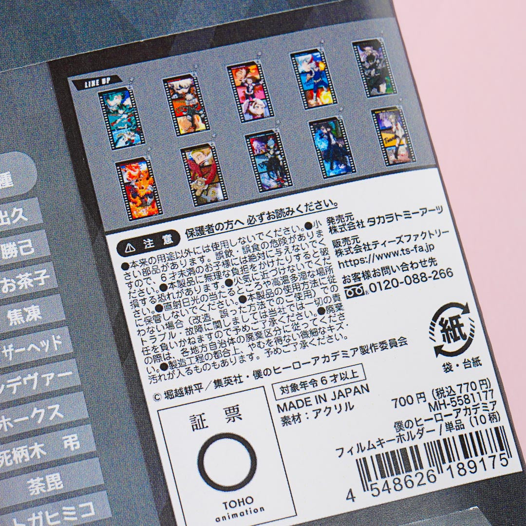 Show off your love for anime by bringing along this cool charm at the next Otaku convention! It has a film strip design showcasing prints of My Hero Academia characters. Surprise yourself with a random charm design selected from a set of 10 when you order.