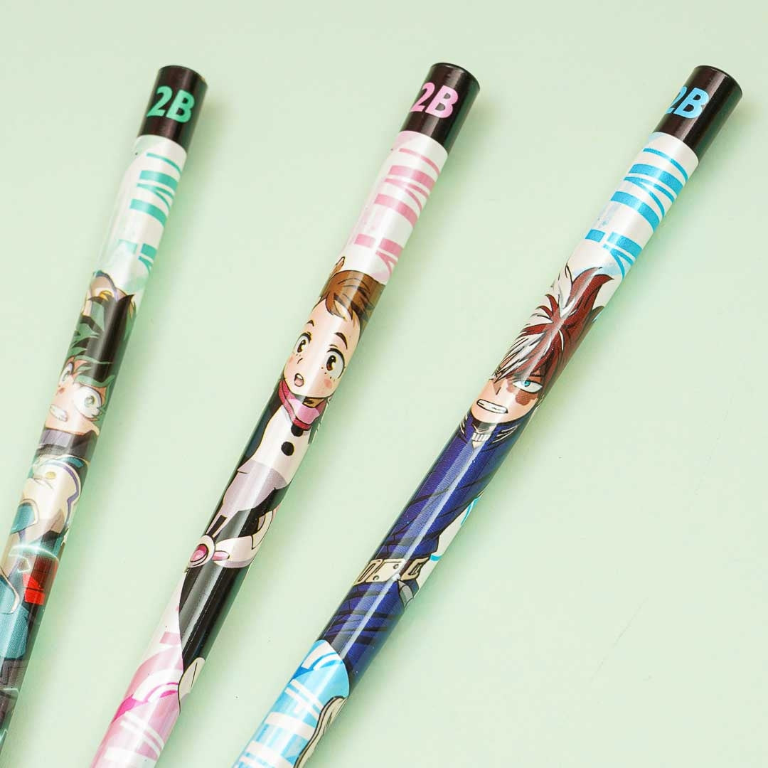 Have fun writing fanfiction or sketching anime characters with this cute pencil set. It showcases prints of My Hero Academia characters!