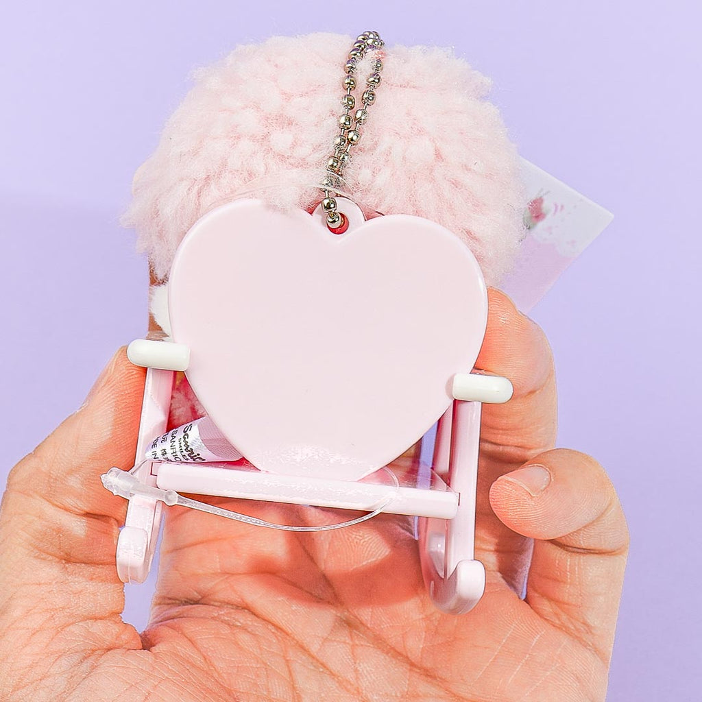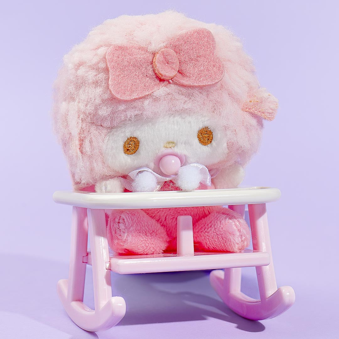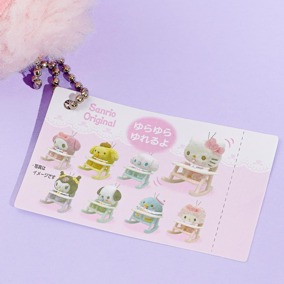 This baby My Sweet Piano plushie charm is sitting on a rocking chair. Use it to add a dose of cuteness to your desk! You can also remove this mini-sized plushie charm from the rocking chair. Attach it to your favorite bag with its removable ball chain.
