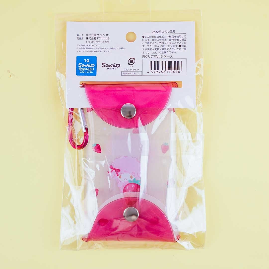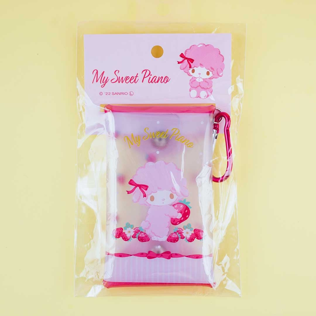 Use this super cute clear multipurpose case to store small items like trinkets and charms! It showcases a print of My Sweet Piano harvesting strawberries. This case has 2 snap-button closures and a metal carabineer.