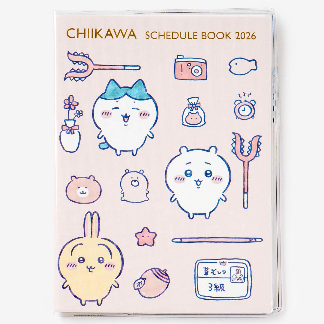 Keep track of your monthly plans with this super cute schedule book featuring prints of Chiikawa! There's a 2026 calendar, monthly schedule pages, and blank pages for your reminders. It also has a clear plastic cover where you can clip your pen!