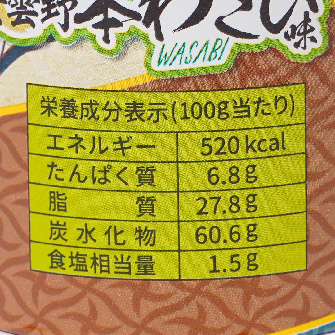 Indulge in this tasty tube of potato chips! They're made with real wasabi paste kneaded into the potato dough. Enjoy the unique spiciniess of these tasty chips!