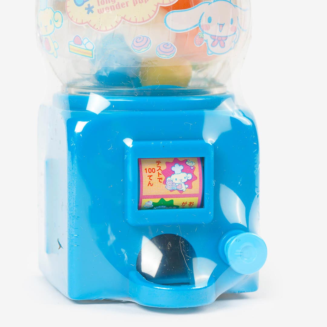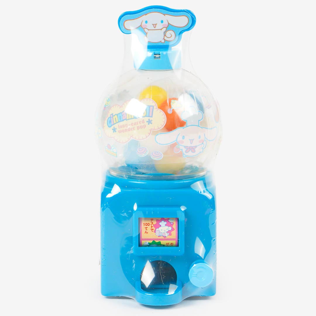 Have fun playing with this mini gumball machine! It contains colorful gumballs and features Cinnamoroll. Press the button to see your fortune and dispense a gumball!
