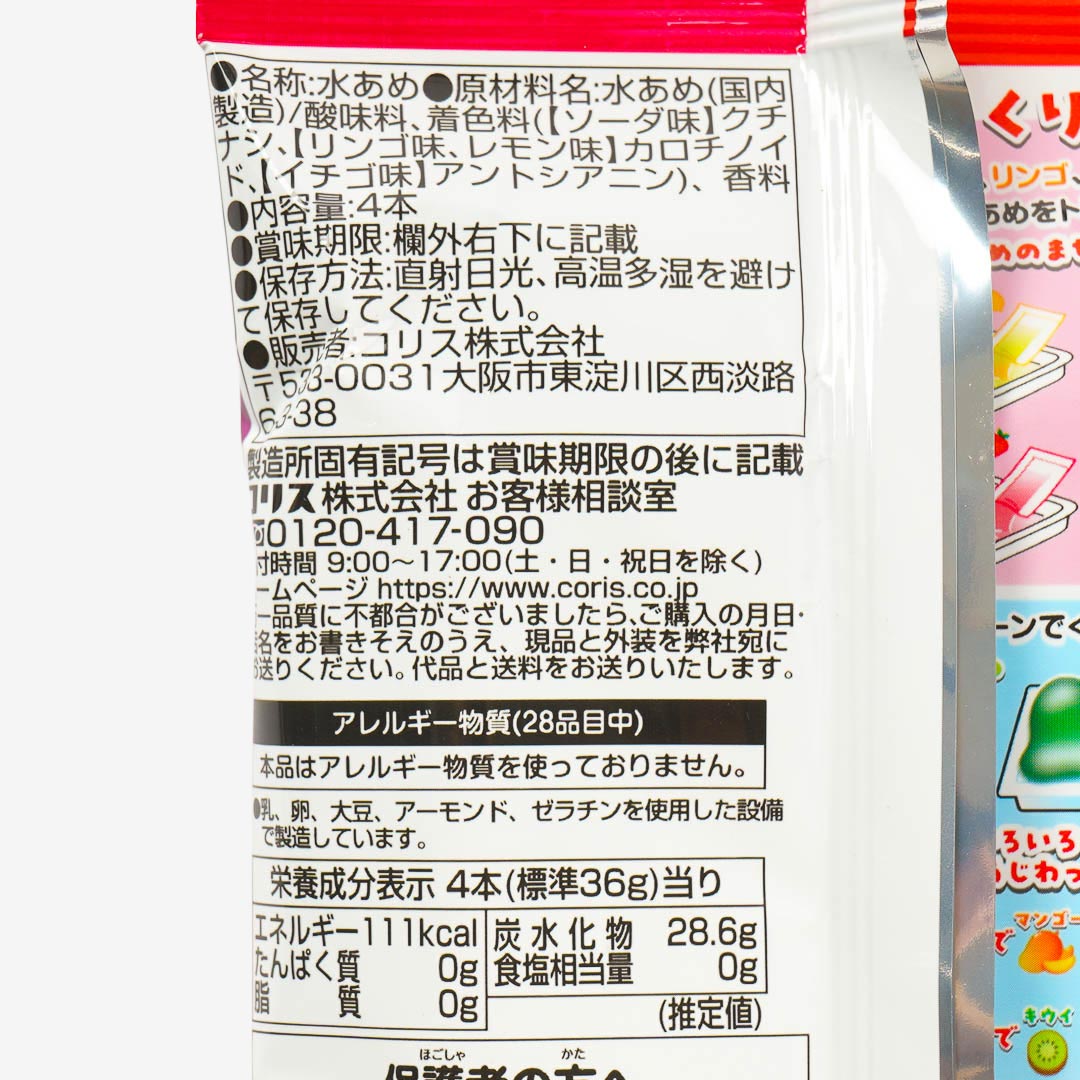 Have fun playing with this pack of syrup candy. You can combine flavors to create new ones with different tastes and colors! This syrup candy has four different flavors you can experiment with: lemon, apple, strawberry, and soda.