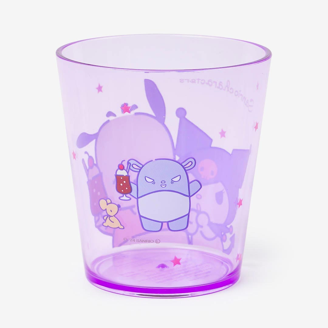 Pour your favorite drink into this transparent plastic cup! It's decorated with a print of Kuromi and Pochacco. Add it to your collection of kawaii cups in your cupboard!