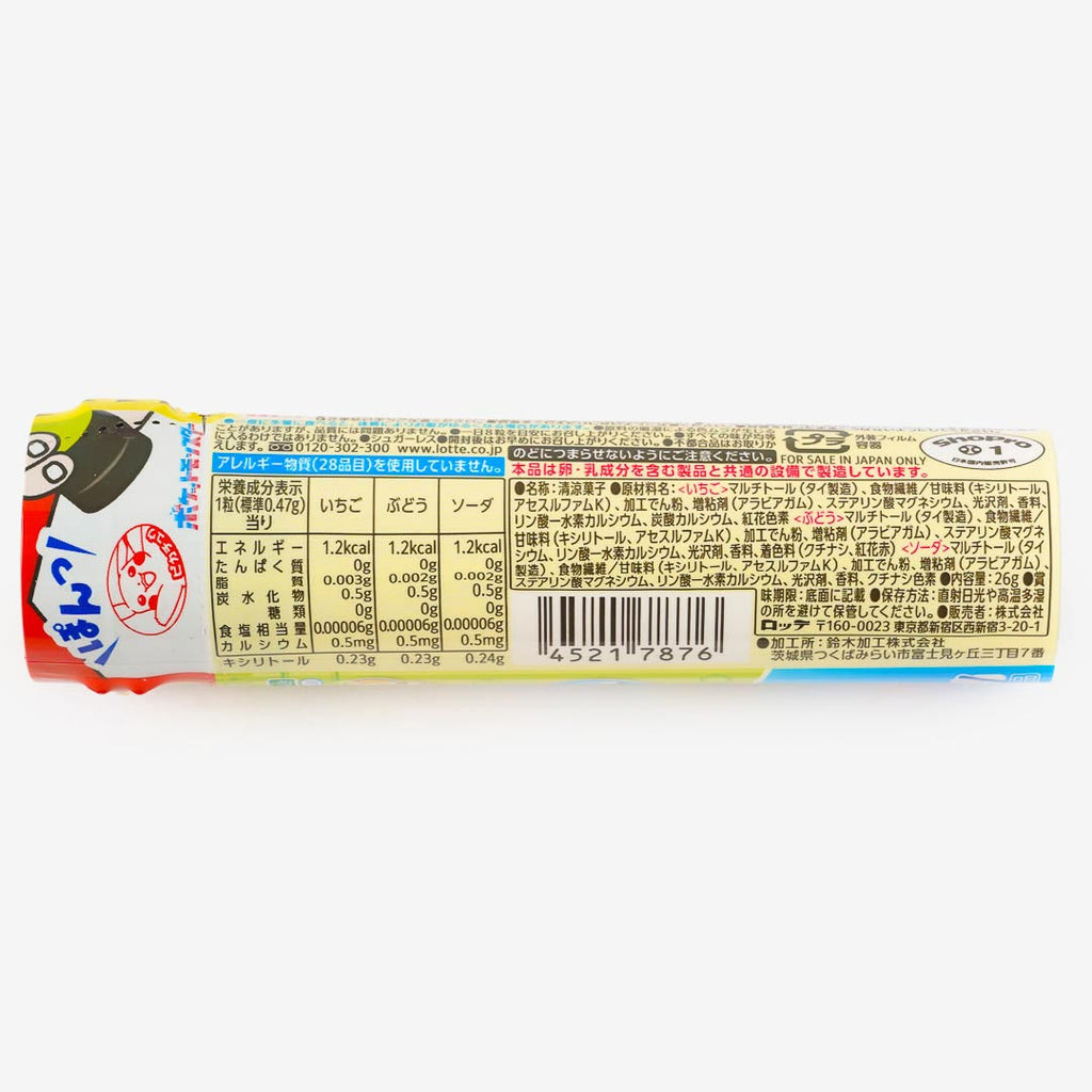 Snack and smile with this ramune candy pack! There are three flavors—grape, strawberry, and soda. Each piece is made with xylitol to help protect teeth and keep your mouth feeling fresh. The pack also has a surprise Pokemon stamp!