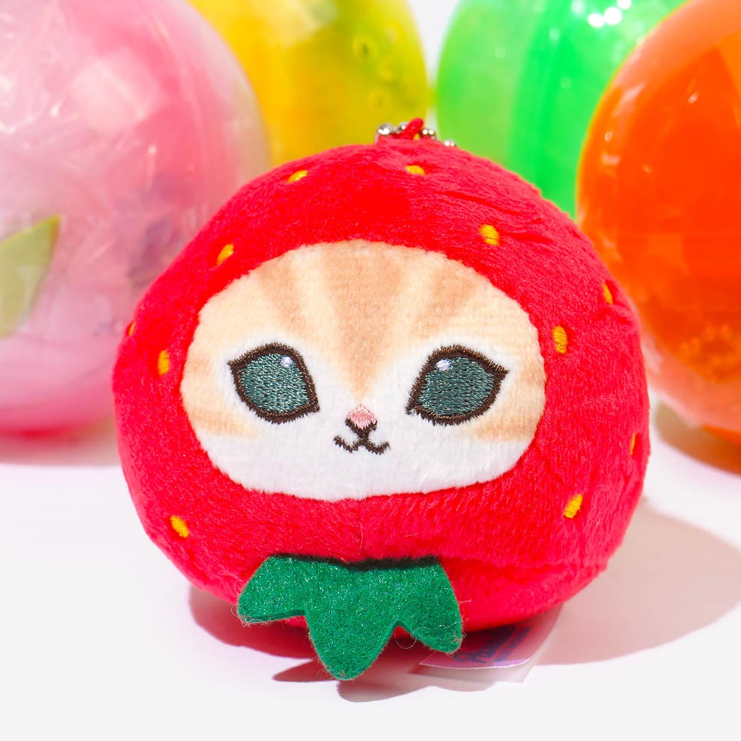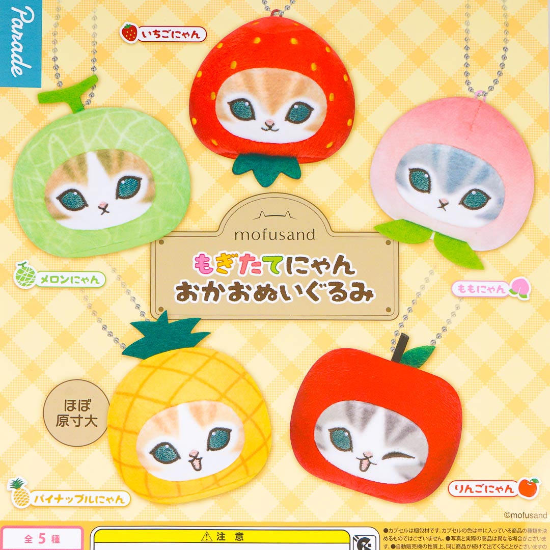 Make you backpack extra cuter when you attach this plush charm! It looks like a Mofusand wearing a fruit headgear. This charm comes in a colorful gachapon capsule!