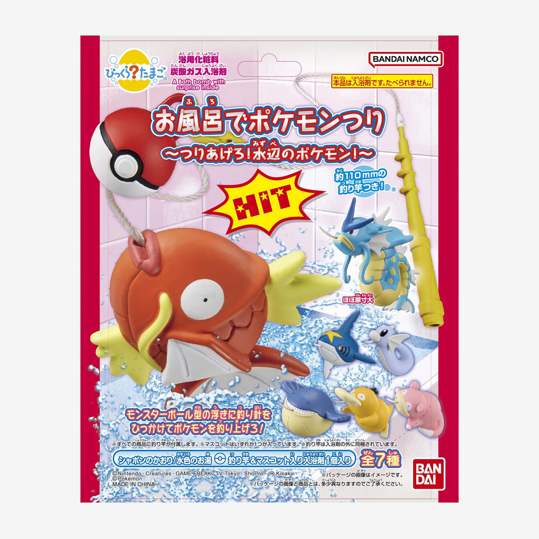 Go fishing for Pokémon with this fun bath ball. All you have to do is put it in your bathtub and watcht the ball dissolve to reveal a cute Pokémon figure. This bath ball turns the water light blue and it has a nice soapy scent! Surprise yourself with a random Pokemon with every bath ball.
