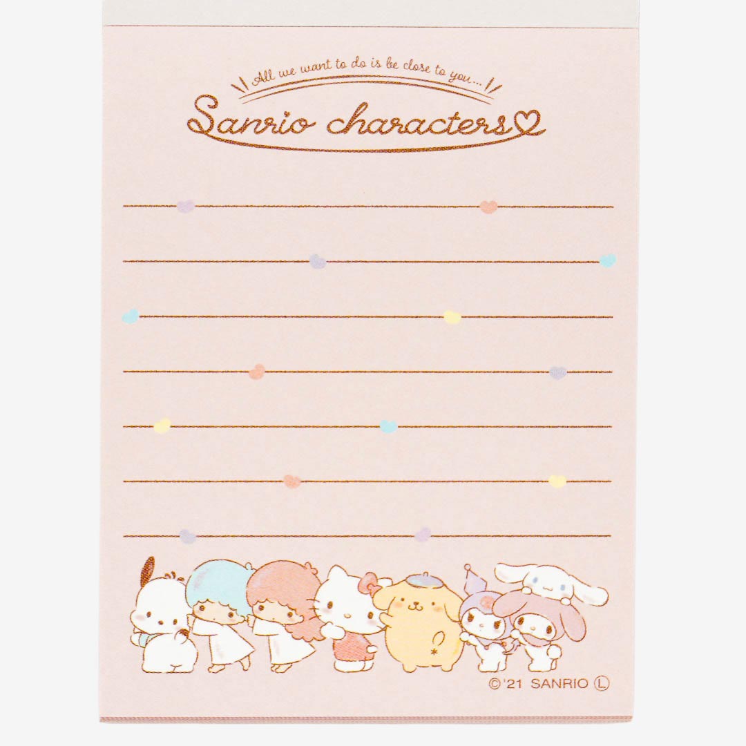 Write your grocery list using this mini memo pad! It has two different lined sheet designs that feature the Sanrio Characters being happy together.
