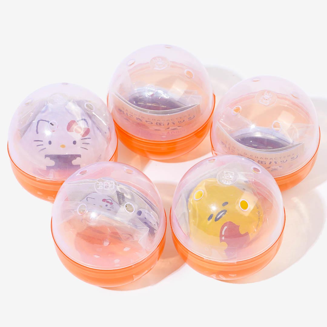 Add a touch of kawaii to your backpack with this super cute badge featuring the Sanrio Characters! It's shaped like an onigiri or Japanese rice ball. This kawaii badge comes in a gachapon capsule so you'll get a surprise design!