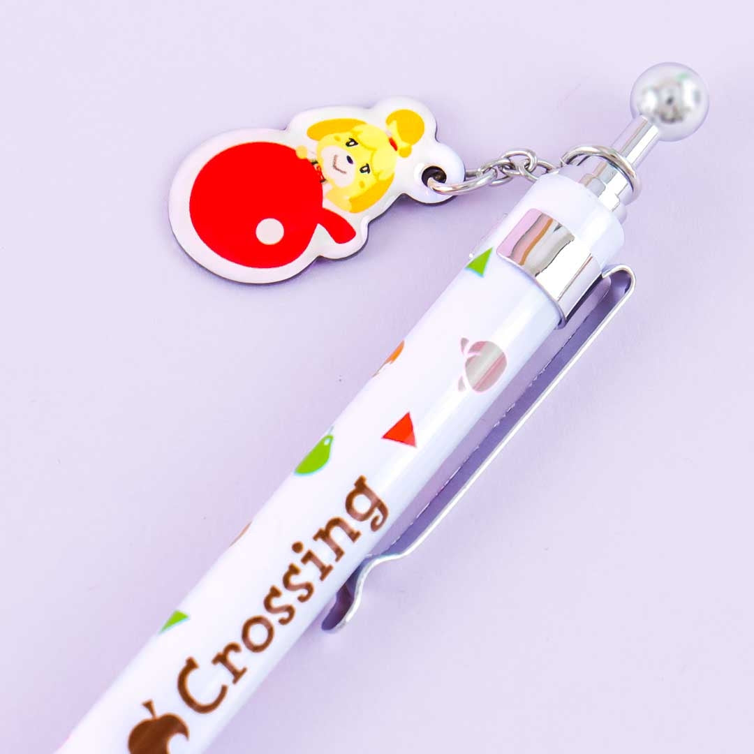 • A click pen with a hanging charm featuring Isabelle from Animal Crossing