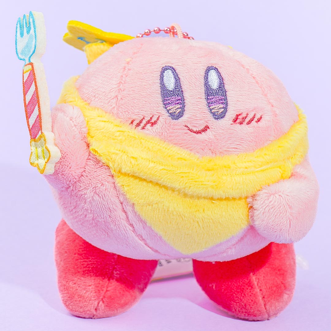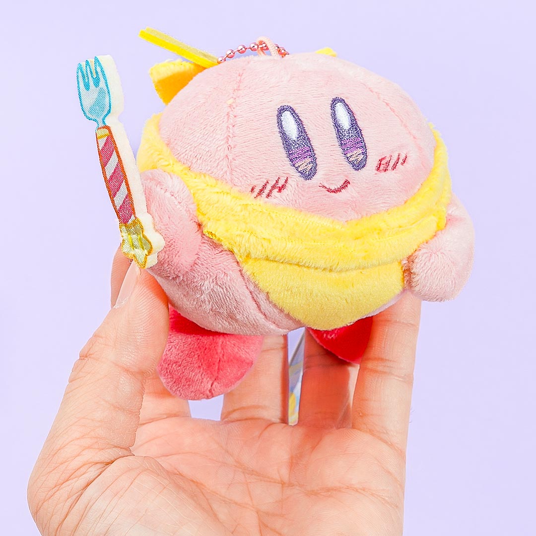 This cute Kirby plushie is ready for breakfast. It comes from the Kirby Happy Morning series! Make space in your gaming room for this cute medium-sized stuffed toy. You can also bring it along trips by attaching it to your bag with its removable ball chain.