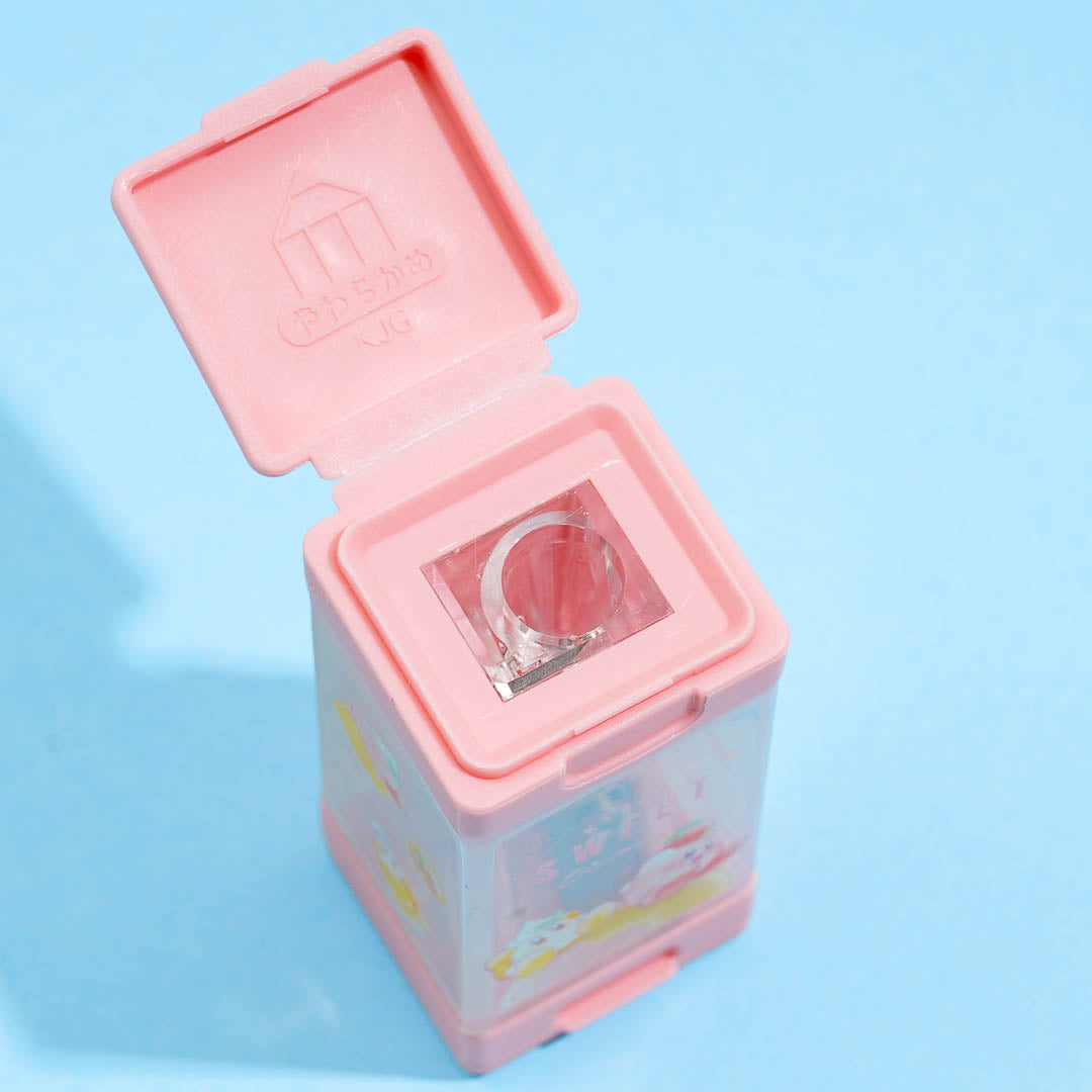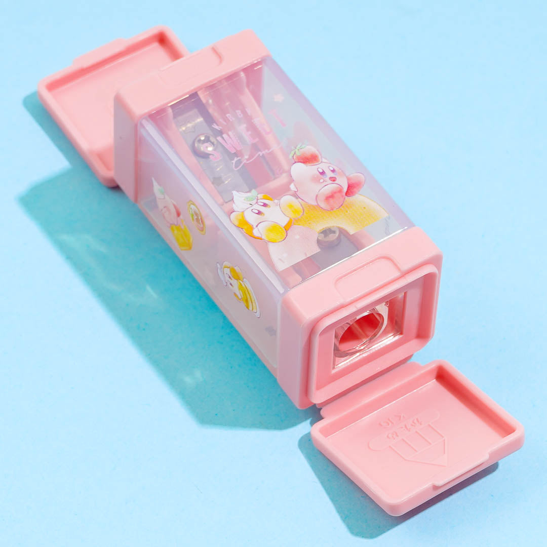 Don't forget to place this super cute twin sharpener in your pencil case. It features prints of Kirby playing with sweets together with Waddle Dee! This sharpener has two different slots so you can sharpen your pencils in different ways.
