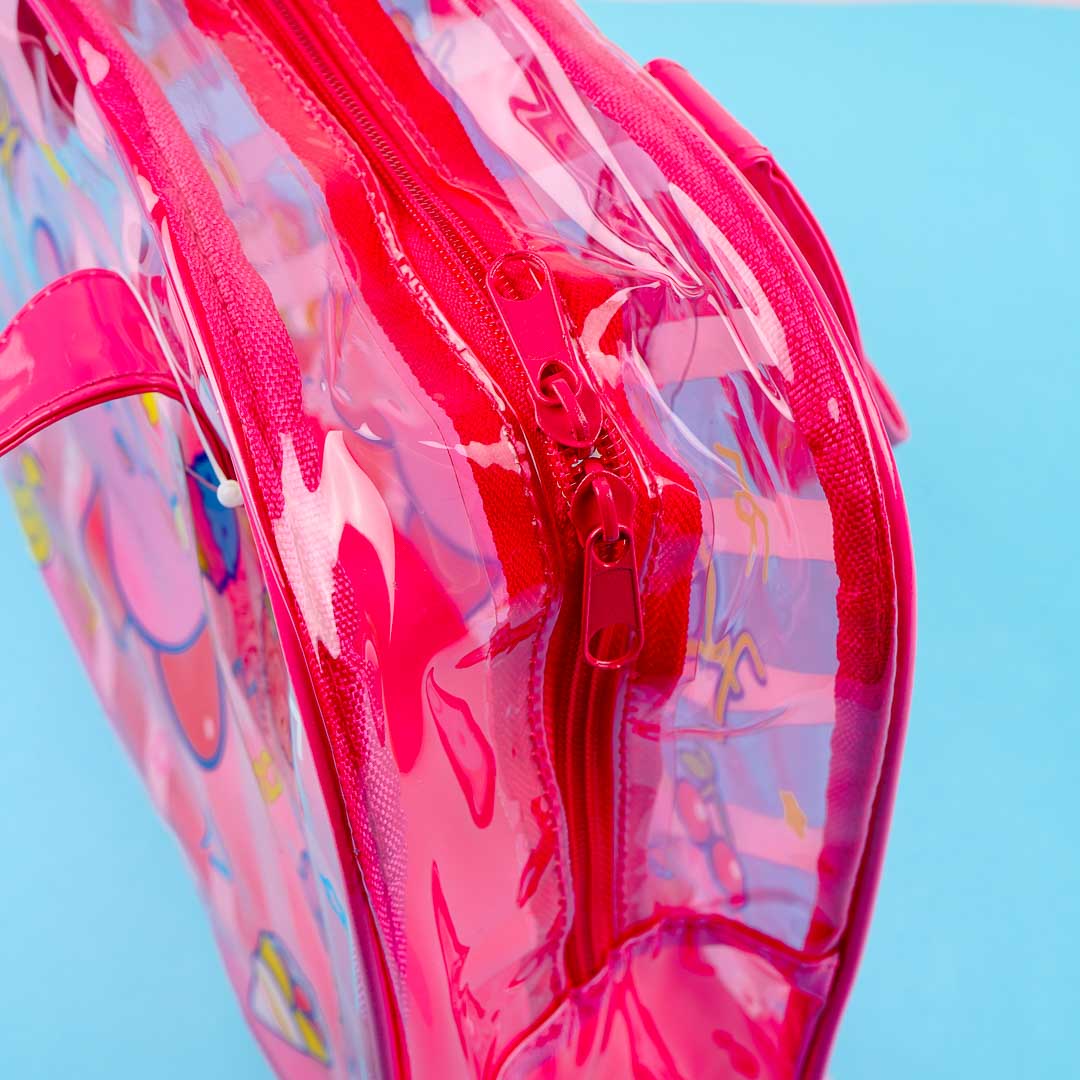 Keep your summer essentials inside this kawaii clear handbag! It’s decorated with cute lively prints of Kirby with his favorite sweets like ice cream, crepes, fruits, and more. You can take it with you to the beach!
