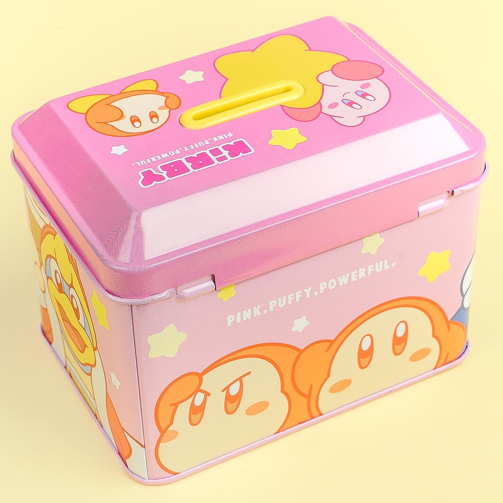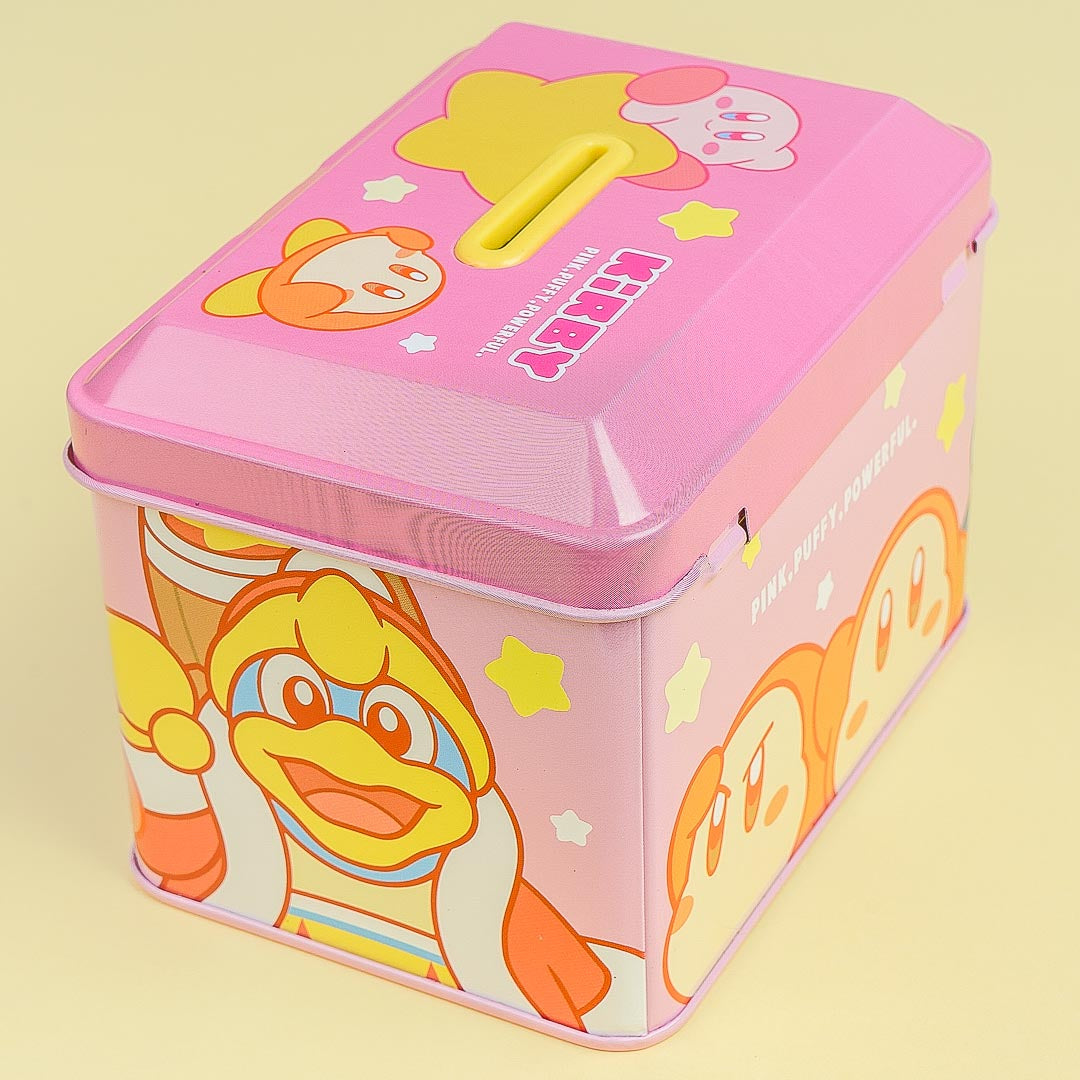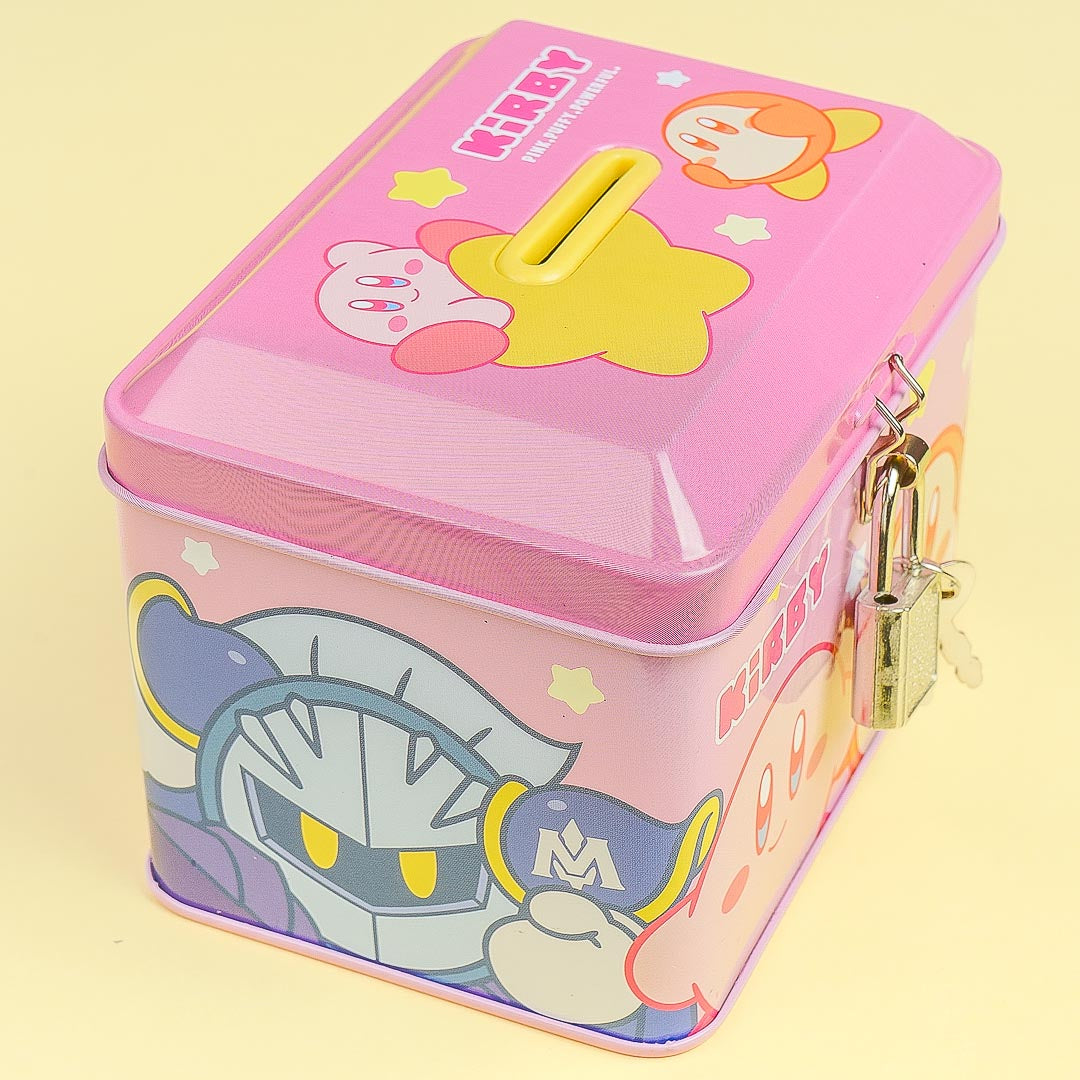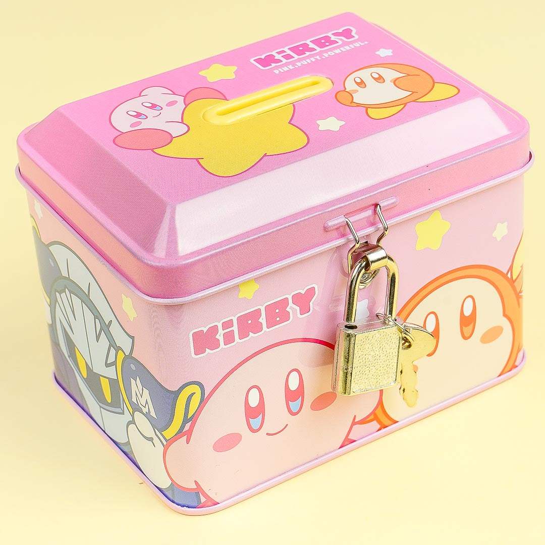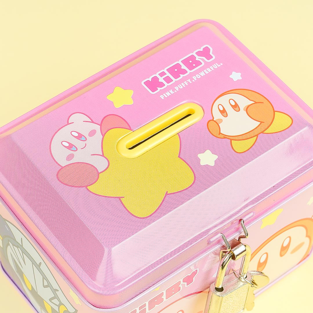 Saving money is easy-peasy when you use this cute coin bank! It showcases prints of Kirby and Waddledee. You can rest easy knowing that you're money is safe and secure thanks to this coin bank's lock.