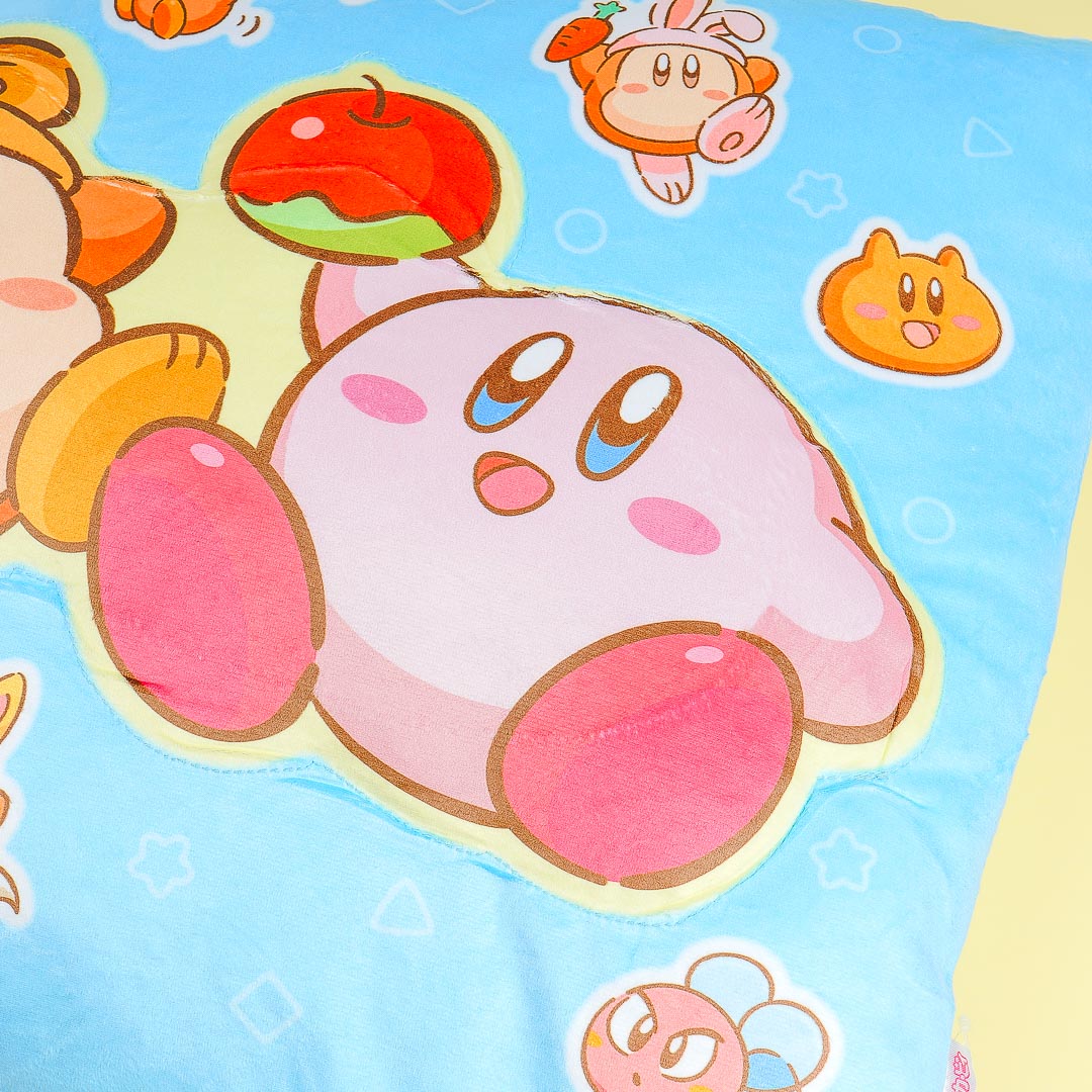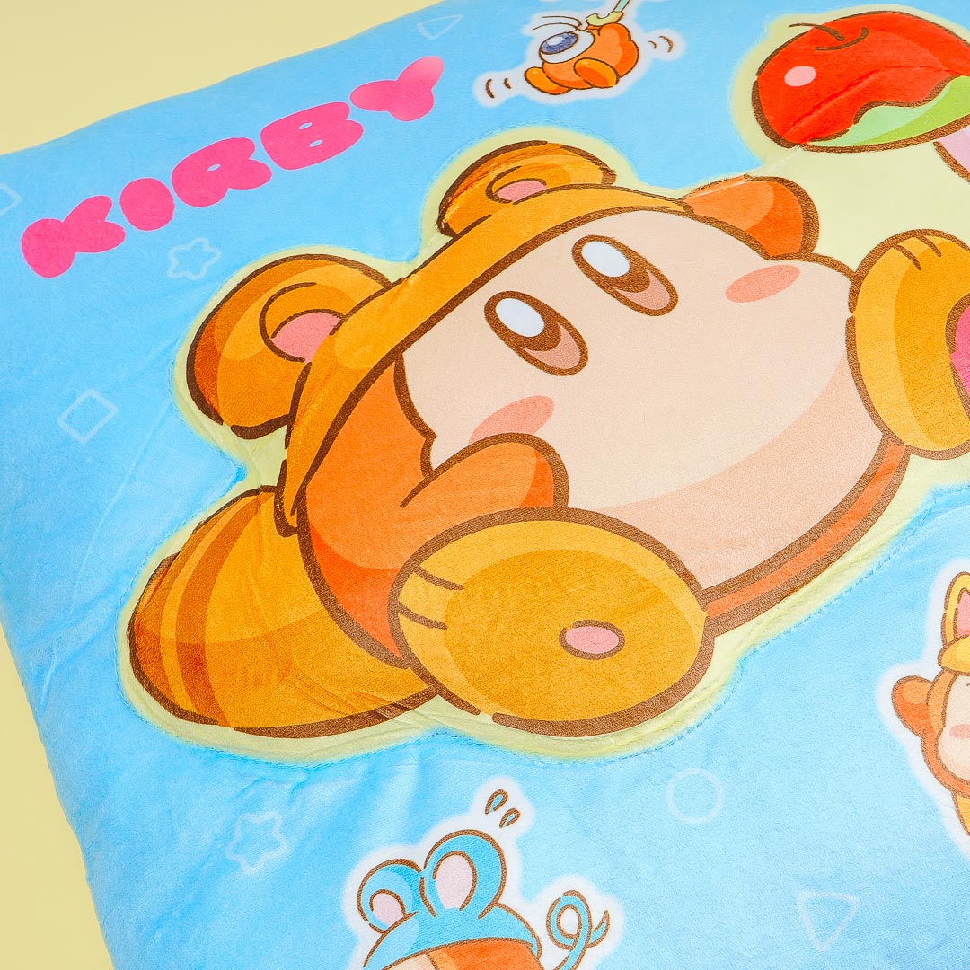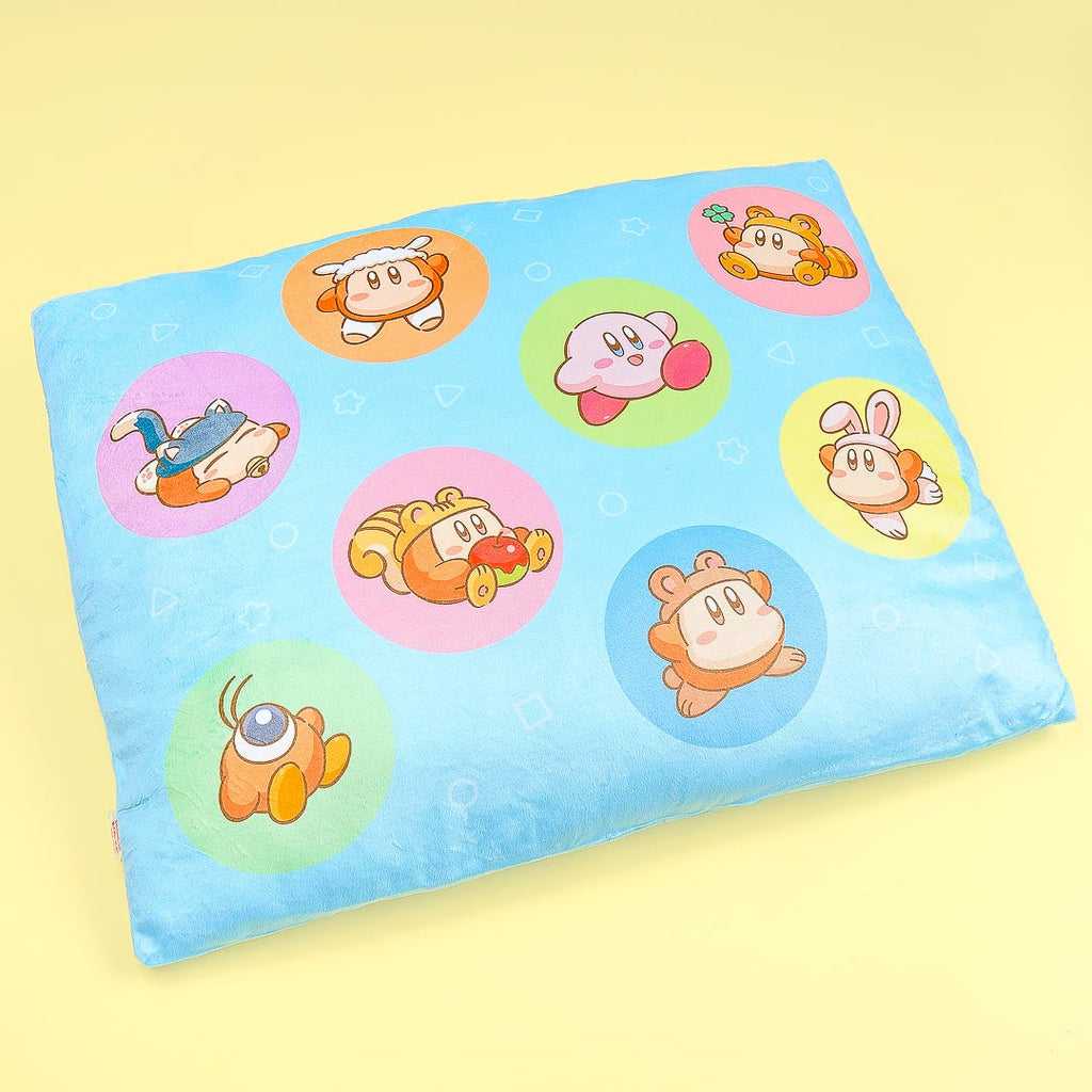 Place this small pillow on your bed or sofa for a touch of kawaii! It showcases cute illustrations of Kirby and his friend Waddle Dee wearing different costumes.