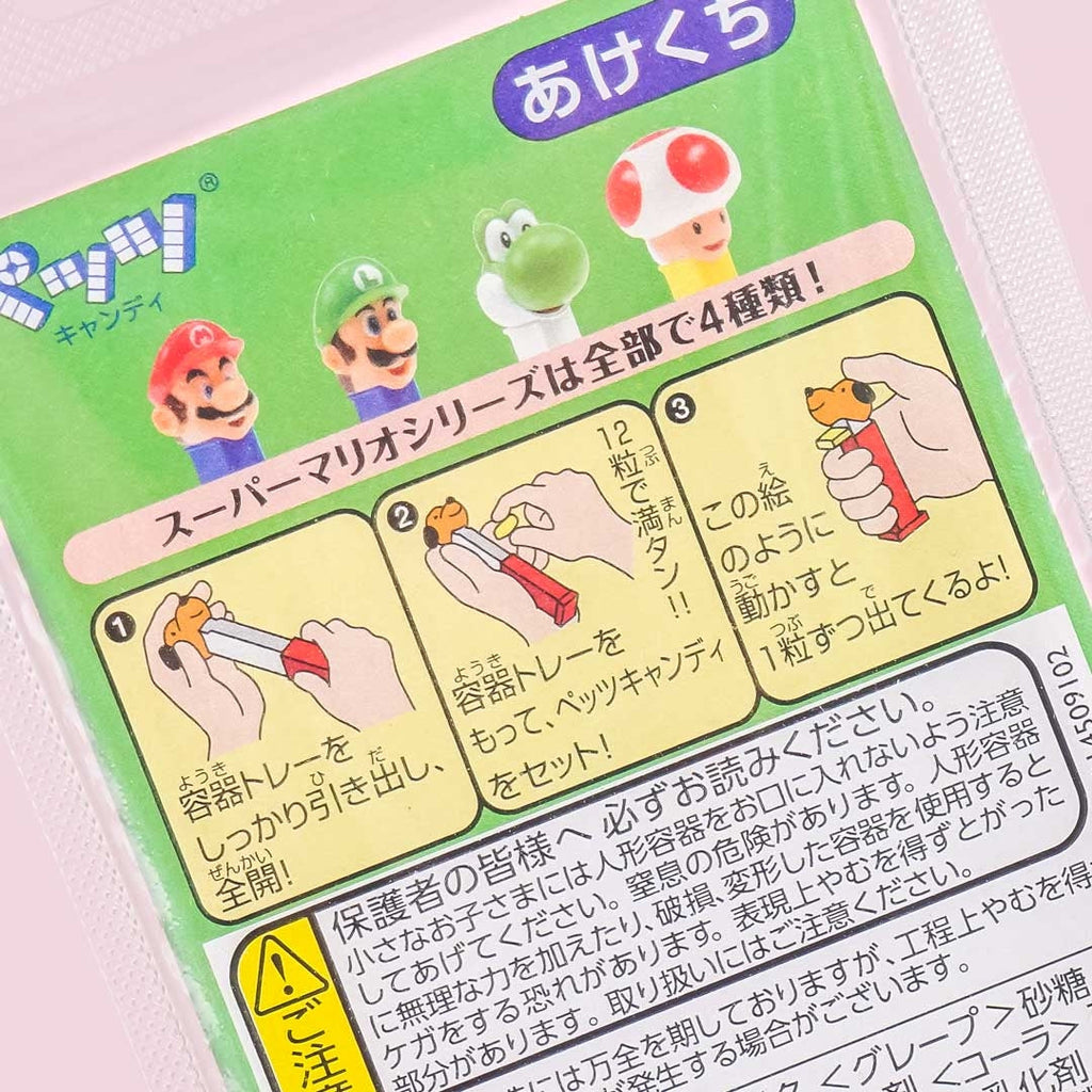 This pack of candy comes with a PEZ dispenser featuring Yoshi from the Super Mario franchise. Enjoy eating these yummy grape and cola-flavored candies!