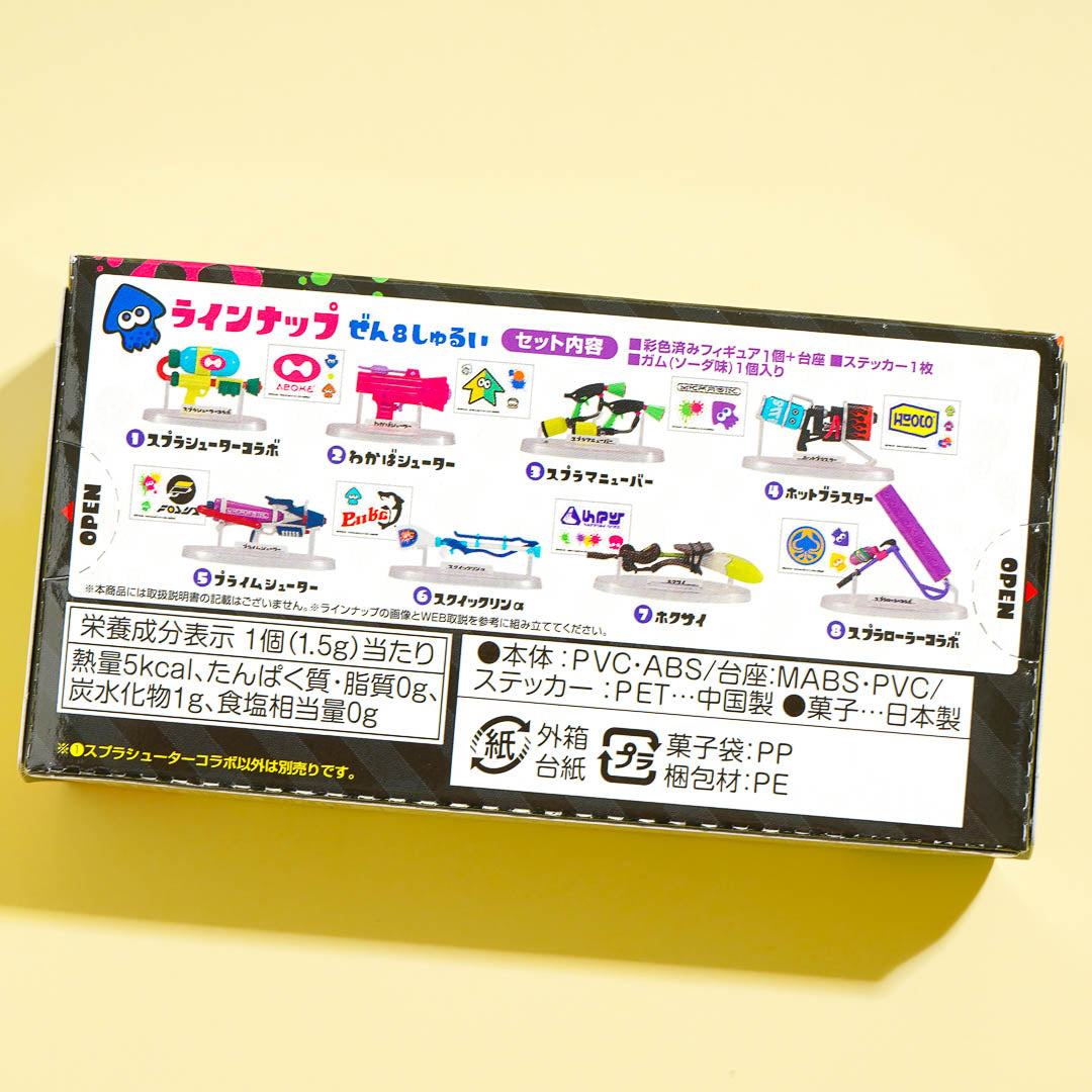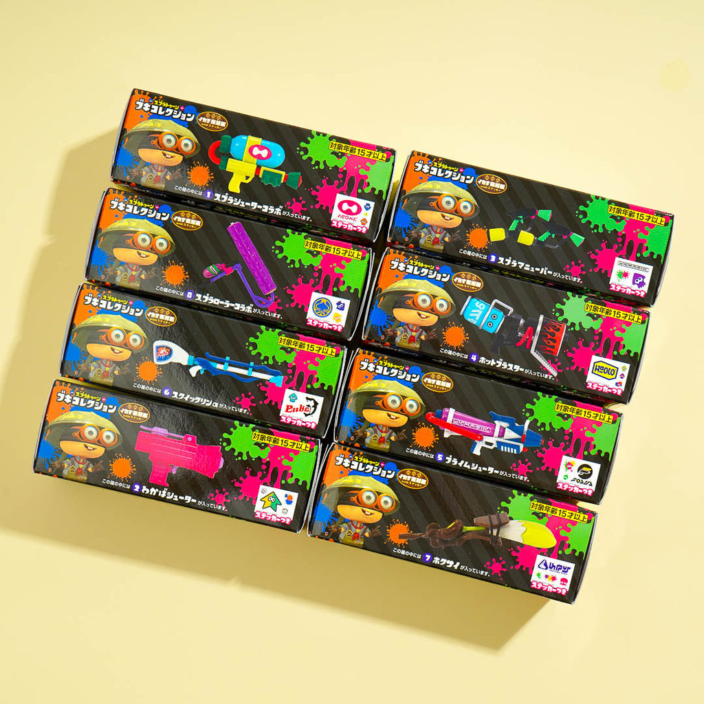 Collect all weapons from the popular video game Splatoon! This blindbox series showcases a mini figure of Splatoon buki or weapon. It even features a stand so you can display your figure on your desk. Plus, the box comes with soda-flavored gum and stickers to decorate the stand.
