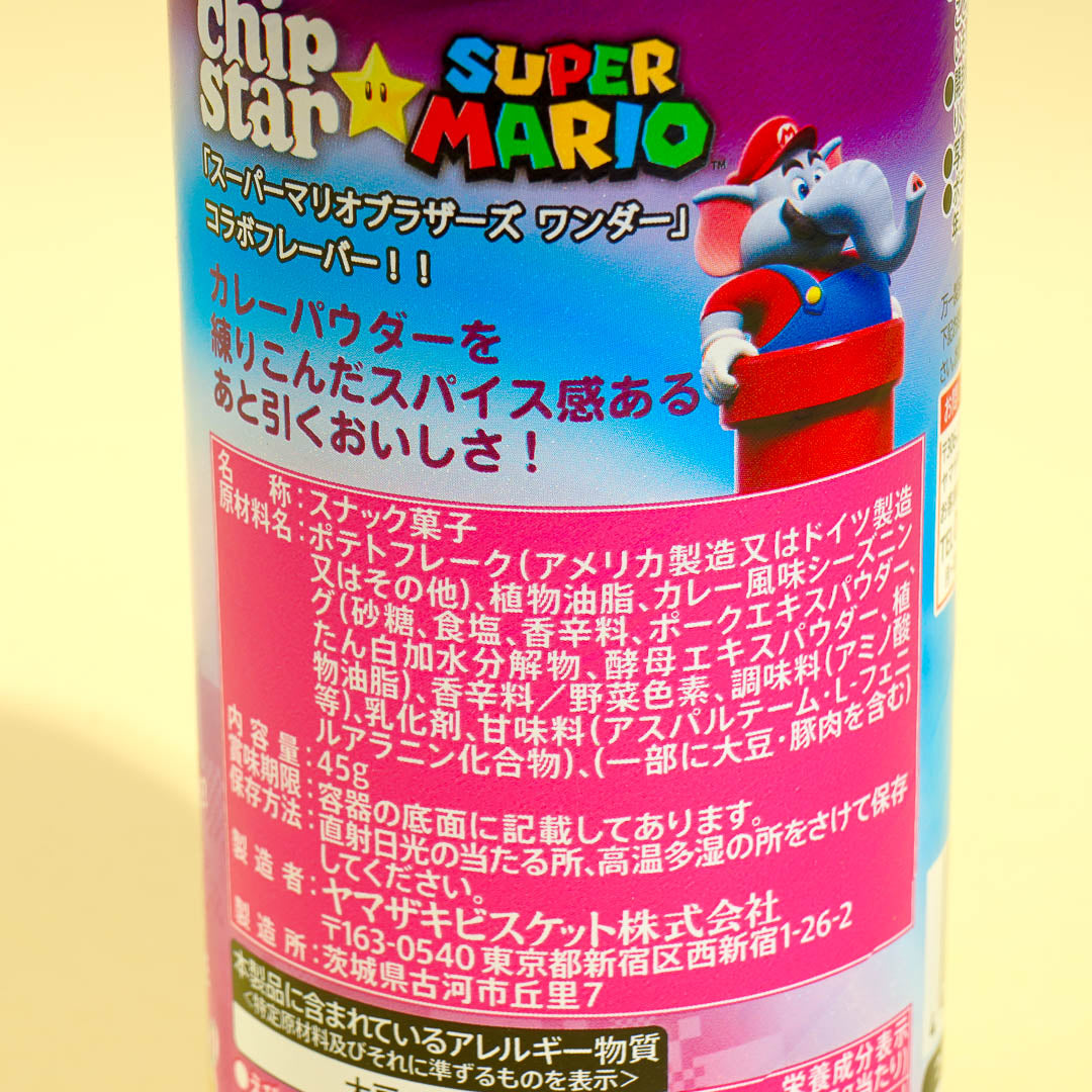 Snack on this tube of delicious potato chips showcasing prints of Super Mario characters! These tasty chips have a delicious wonder flavor which is actually curry, one of Japan's most beloved meals. Add it to your snack bin!