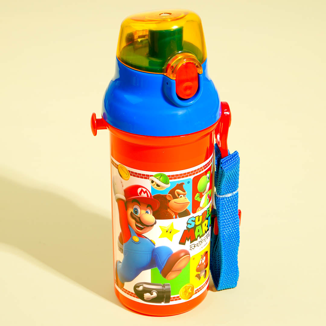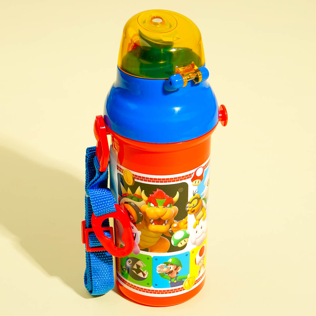 Quench your thirst by using this bottle featuring cute illustrations of Super Mario! Its lid can be easily opened with just one push. This bottle also comes with an adjustable shoulder strap.
