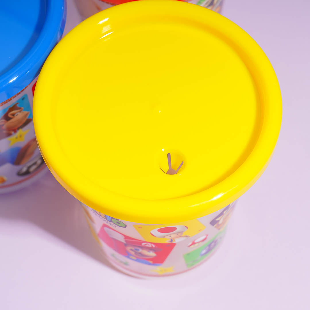 Drink from this kawaii and colorful set of plastic tumblers showcasing cute illustrations of Super Mario! Each cup comes with a lid and bendy straw so you can conveniently bring your drink.