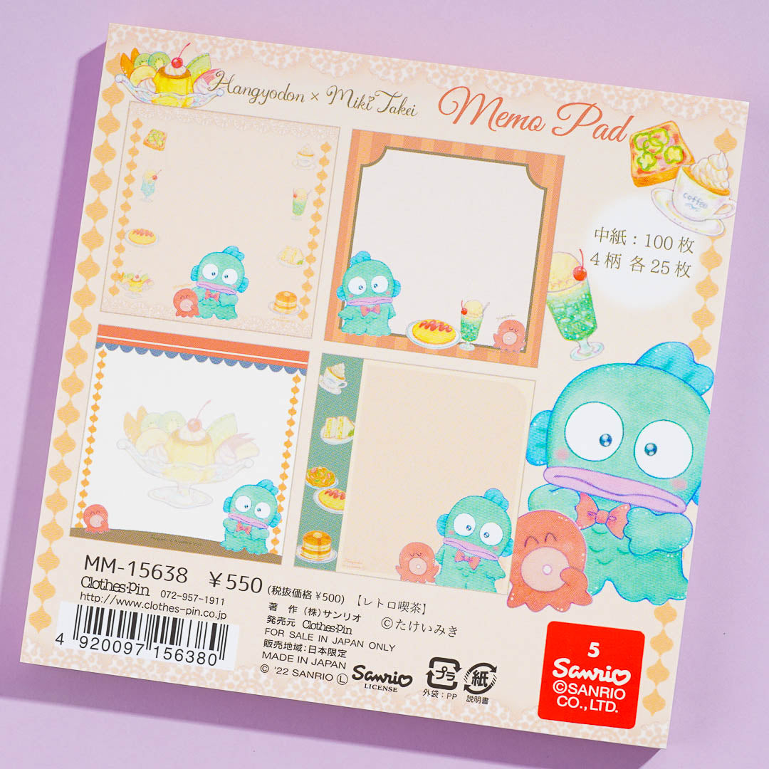 This super kawaii memo pad is decorated with cute prints of Hangyodon and his BFF, Sayuri the octopus! The special illustration was created by popular Japanese artist, Miki Takei. Use this to write down important reminders!