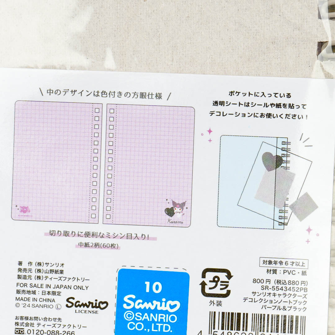 This super cute spiral notebook features prints of Kuromi holding a heart, but you can decorate it with your own photos and stickers. Simply put your photo collection in the cover's transparent pocket for a kawaii "decollection" or decor collection! The pages have grid lines so you can also use this notebook when practicing your drawing skills.