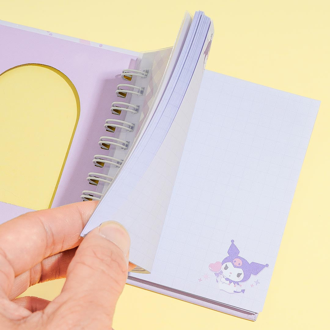 Write your important reminders on this super kawaii ring-bound notepad! It features cute prints of Kuromi and pastel-colored ribbons. This notepad has a transparent pocket at the cover where you can insert your favorite photo.