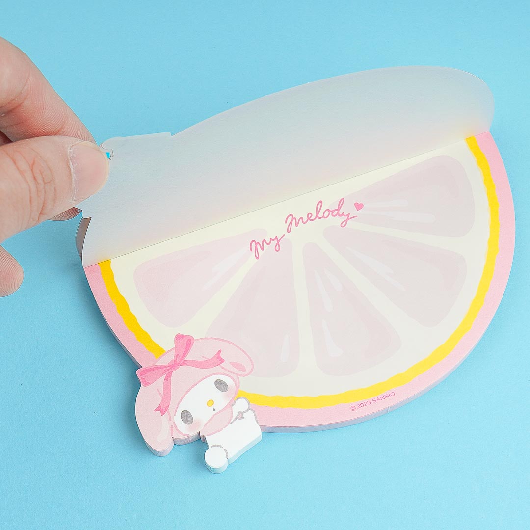 This kawaii memo pad is shaped like half a slice of a citrus fruit! It also decorated with a print of My Melody, one of Sanrio’s cutest bunnies! Use the sheets to write sweet short messages to your pals.